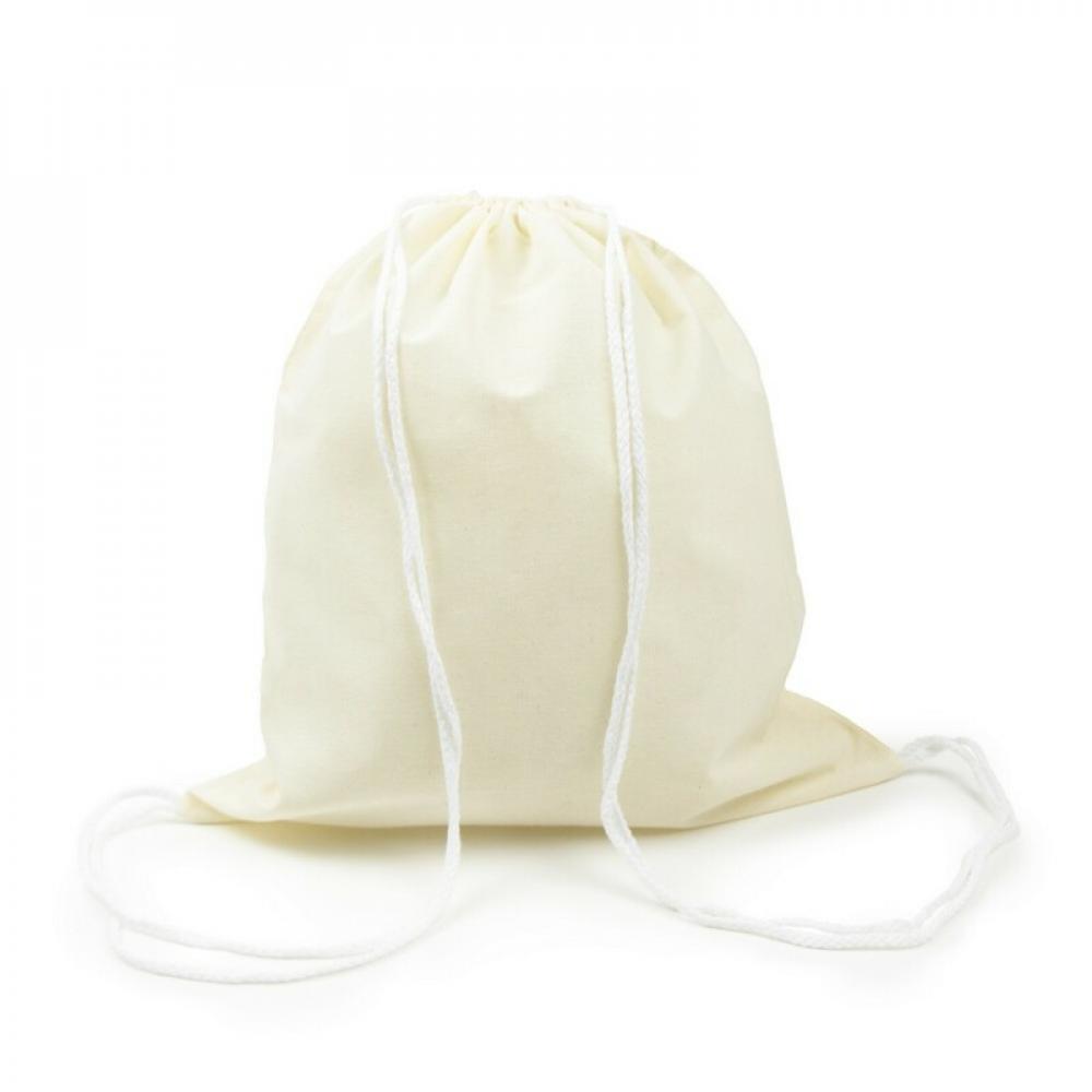Сумка на шнурке, завязка позволяет носить ее на спине, в нее можно положить небольшие продукты или спортивную одежду для спортзала, изделие изготовлено из хлопка плотностью 100 г/м2.