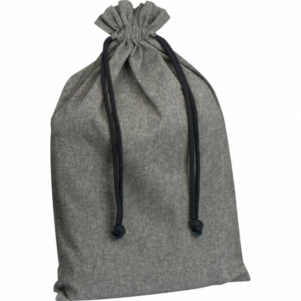 Большой хлопковый мешок из переработанного хлопка, с сертификатом Oeko-Tex® STANDARD 100, плотность 110 г/м². Мешок закрывается с помощью завязок.