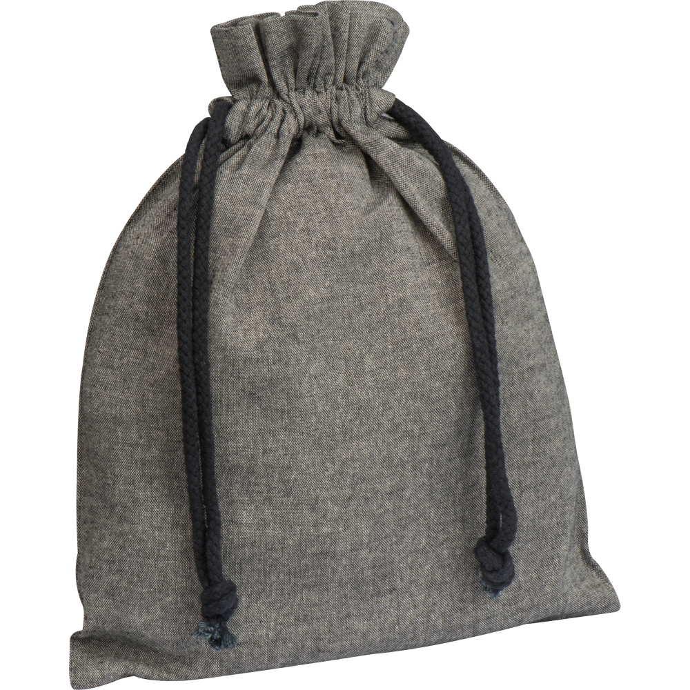 Сертифицированная по стандарту Oeko-Tex® STANDARD 100, переработанная, экологически чистая хлопковая сумка с плотностью 110 г/м². Для закрытия сумки используются 2 завязки.