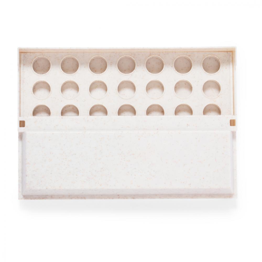 Веселая настольная игра из пшеничной соломы. Состоит из вертикальной доски и 42 круглых фишек (21 красной и 21 синей). Захватывающая для всех возрастов благодаря вставке фишек через отверстия, чтобы получить 4 фишки в одном ряду. Легко собирается благодаря своей подвижной доске, которую можно разложить или сложить. Представлена в коробке дизайна крафт. 42 фишки Пшеничная солома/ABS