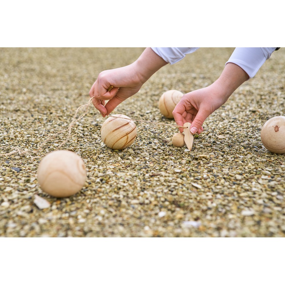 Игра на ловкость, включающая 6 мячей (каждый диаметром 7 см) и 1 меньший мяч (диаметром 2 см), поставляется с веревкой и упакована в набор в хлопковый мешочек с завязкой. Подходит для 4-6 игроков и идеально подходит для активностей, основанных на ловкости, изделие изготовлено из дерева.