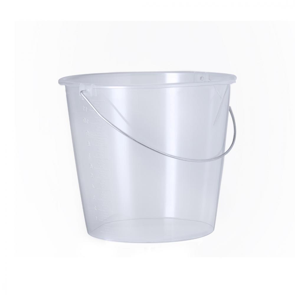 11-литровое ведро из прочного прозрачного ПП. С металлической ручкой и боковой мерной чашкой в мл для быстрого и удобного просмотра. Округлая форма с носиком для налива, чтобы предотвратить разлив, а также большая площадь для брендирования.