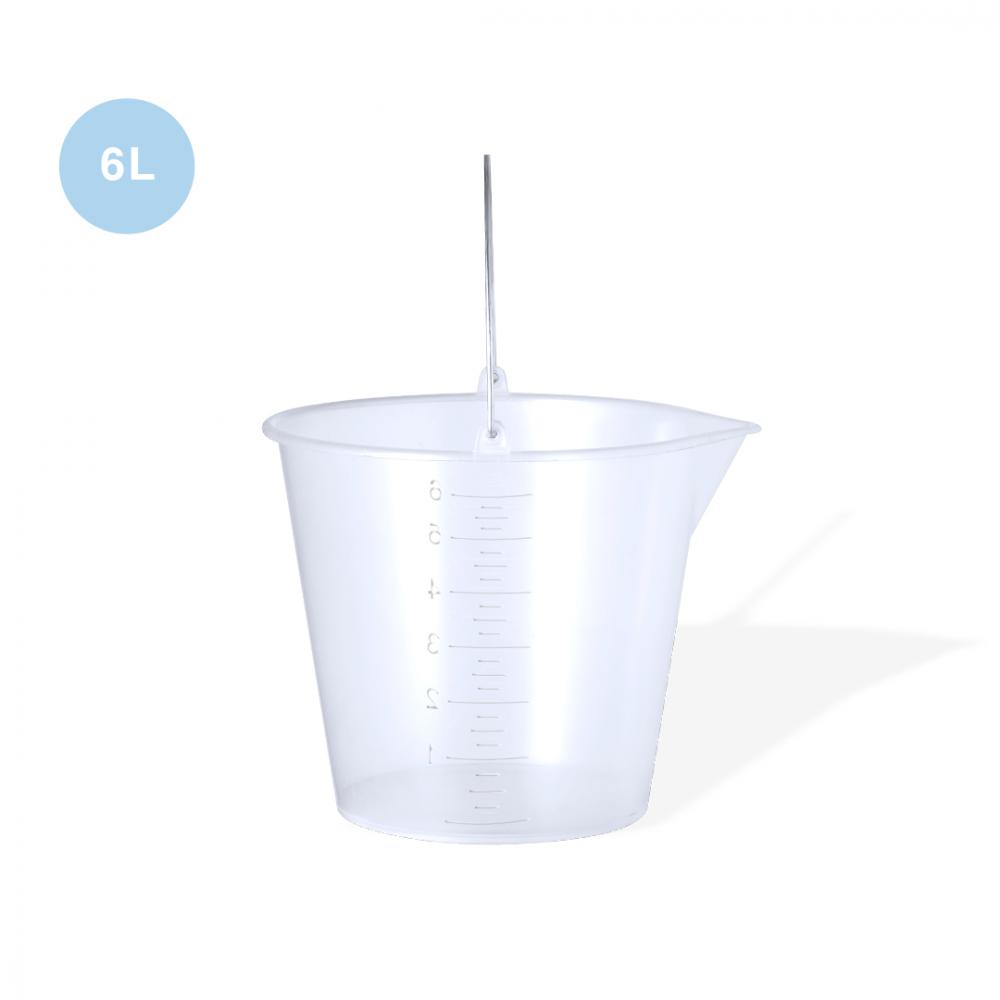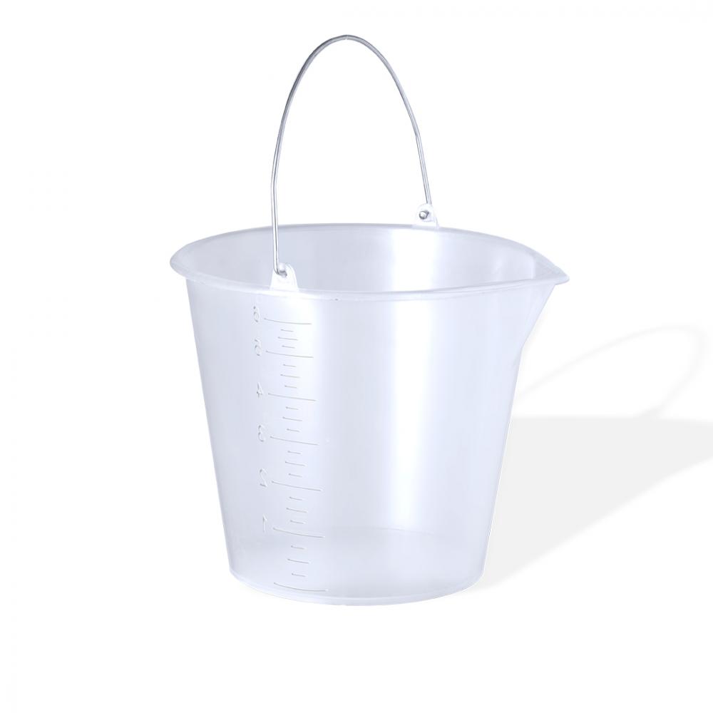 Характеристики: 6-литровое ведро из прочного прозрачного ПП. С металлической ручкой и боковой мерной чашкой в мл для быстрого и удобного просмотра. Округлая форма с носиком для налива, чтобы предотвратить разлив, а также большая площадь для брендирования. 6 л