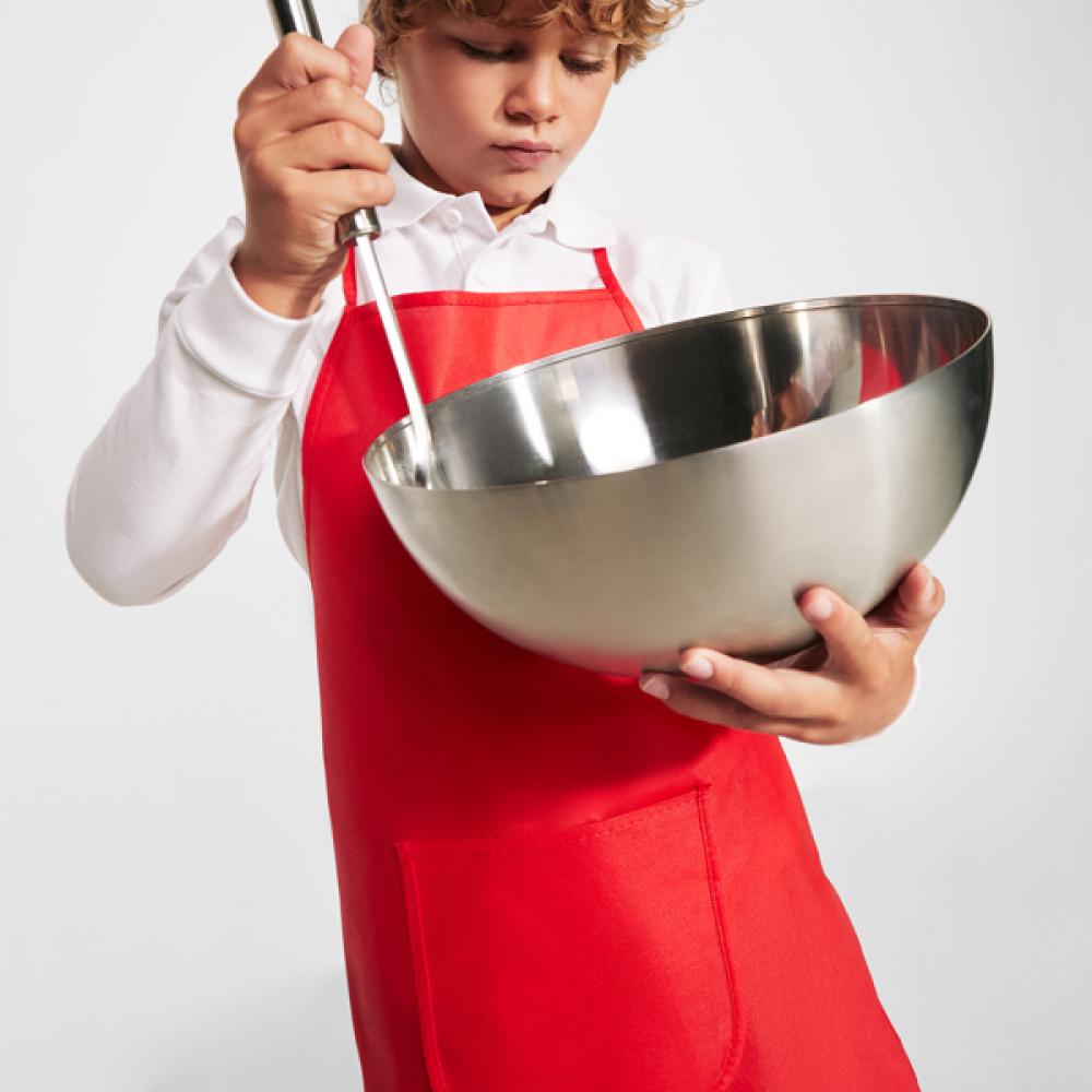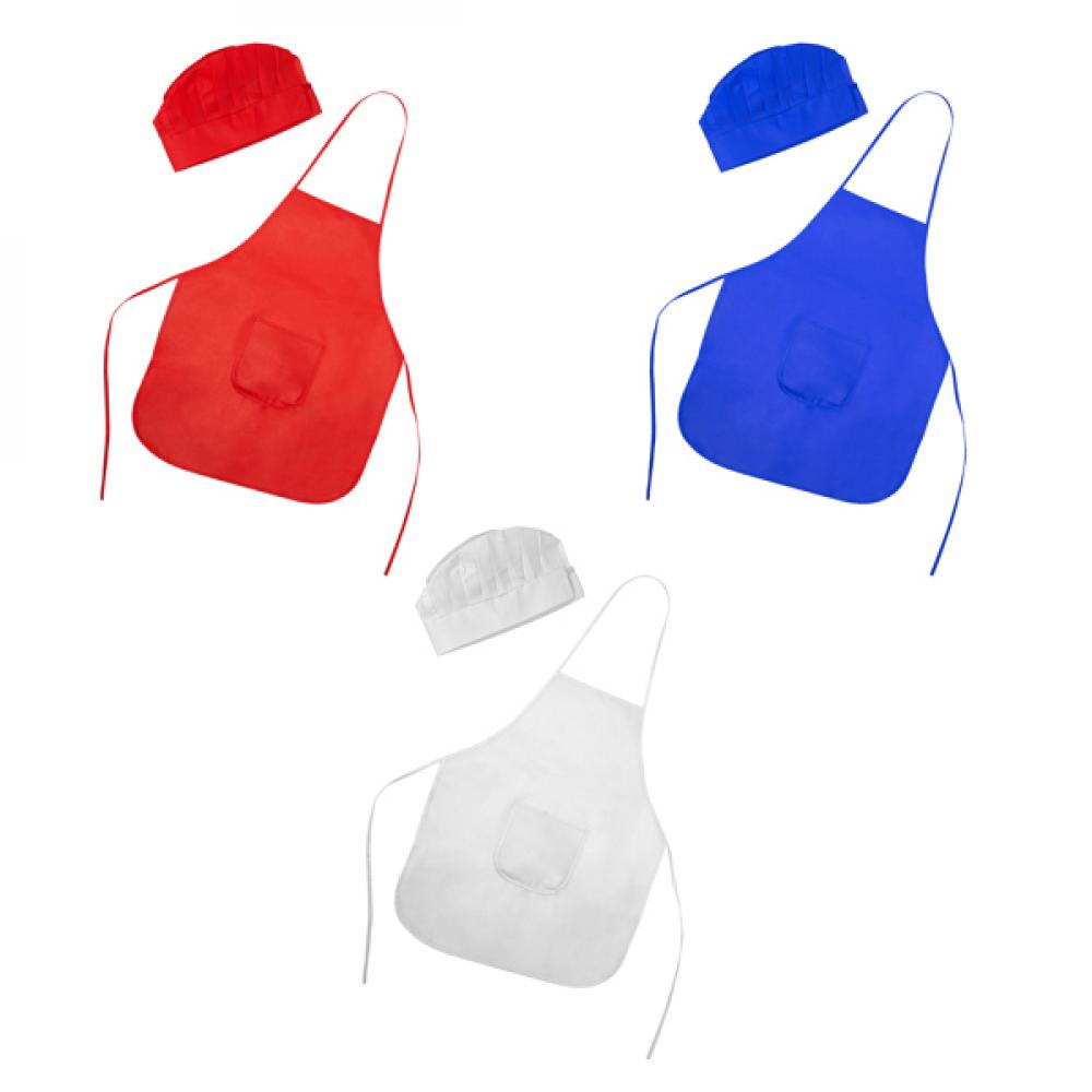 Нетканый цветной фартук и шапочка, для детей. Регулируется на один размер с помощью застежки-липучки на шапочке.