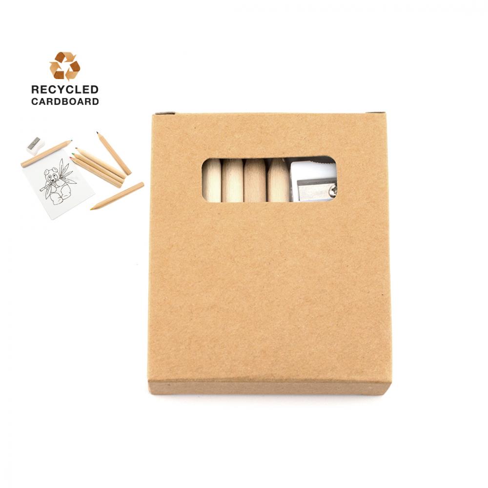 Особенности Набор из 8 предметов в картонной коробке с натуральной отделкой и окошком. В комплект входит блокнот с раскрашивающими рисунками, точилка для карандашей и 6 деревянных карандашей с цилиндрическим корпусом и минами различных цветов. 8 Штук. Блокнот на 20 Листов Переработанный Картон