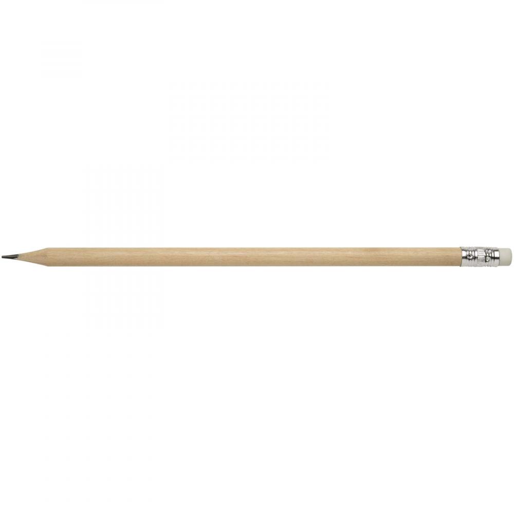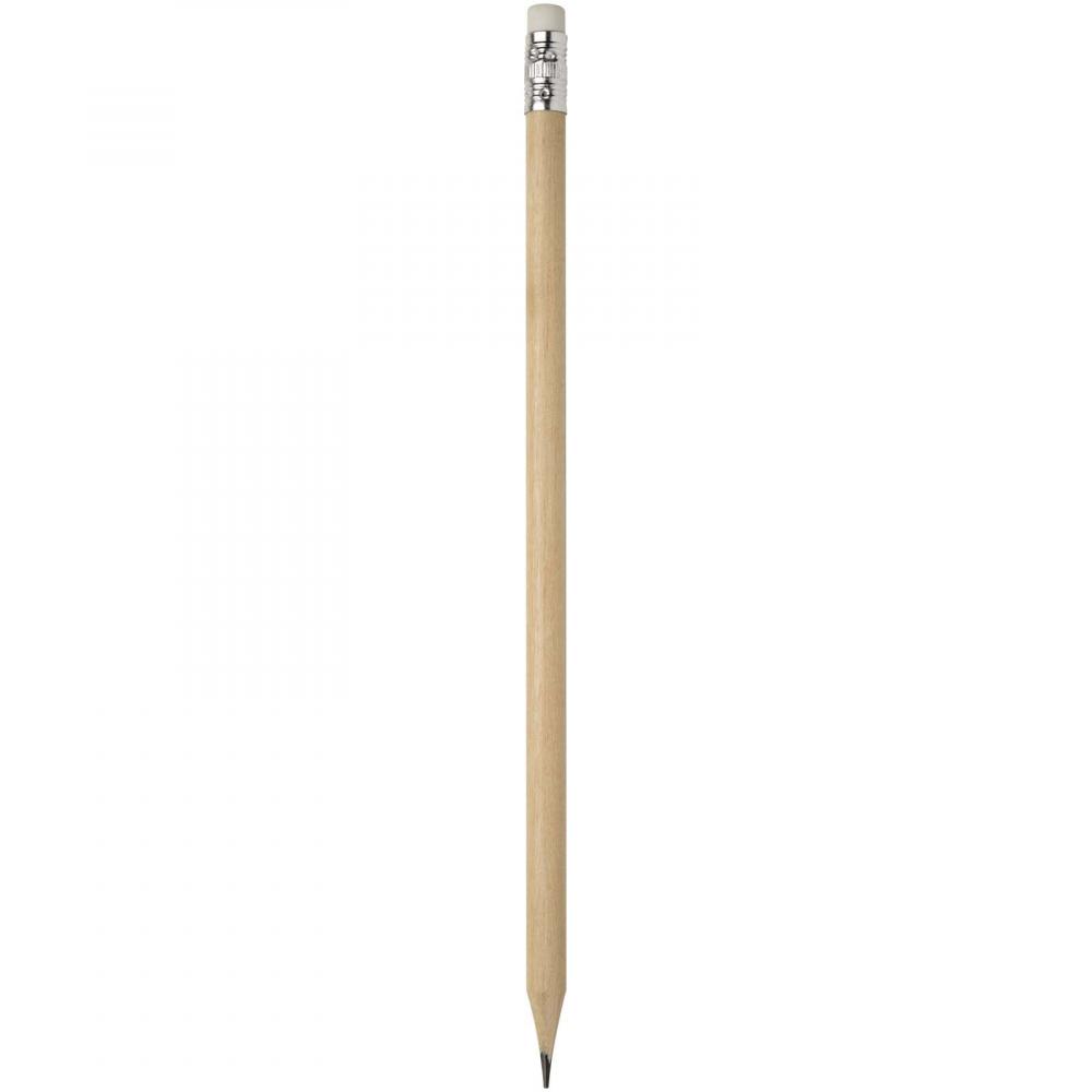 Карандаш с ластиком. Карандаш изготовлен из тополиной древесины, ластик из графита, а обойма из алюминия.