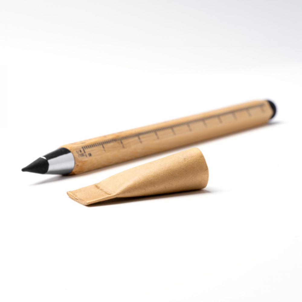 Многофункциональный карандаш с корпусом из бамбука - универсальный и экологически чистый инструмент для ваших письменных нужд и не только. Корпус из бамбука придает карандашу естественный и элегантный вид, а также является экологически чистым вариантом.Сменный бесконечный графитовый стержень позволяет наслаждаться гладким и точным письмом, не беспокоясь о том, что графит закончится. Просто замените стержень при необходимости и продолжайте писать без прерываний.Помимо функции карандаша, этот инструмент также имеет функциональность линейки. С помощью гравированных меток измерений на корпусе из бамбука вы можете использовать его в качестве линейки для быстрых и точных измерений.Карандаш также оснащен сенсорным указателем на противоположном конце, позволяющим вам точно и удобно взаимодействовать с сенсорными устройствами. Независимо от того, нужно ли вам просматривать, писать или рисовать на смартфоне или планшете, сенсорный указатель дает вам больше контроля. Картонная крышка защищает кончик карандаша, когда он не используется, обеспечивая экологически чистый и практичный вариант для сохранения вашего карандаша в безопасности.