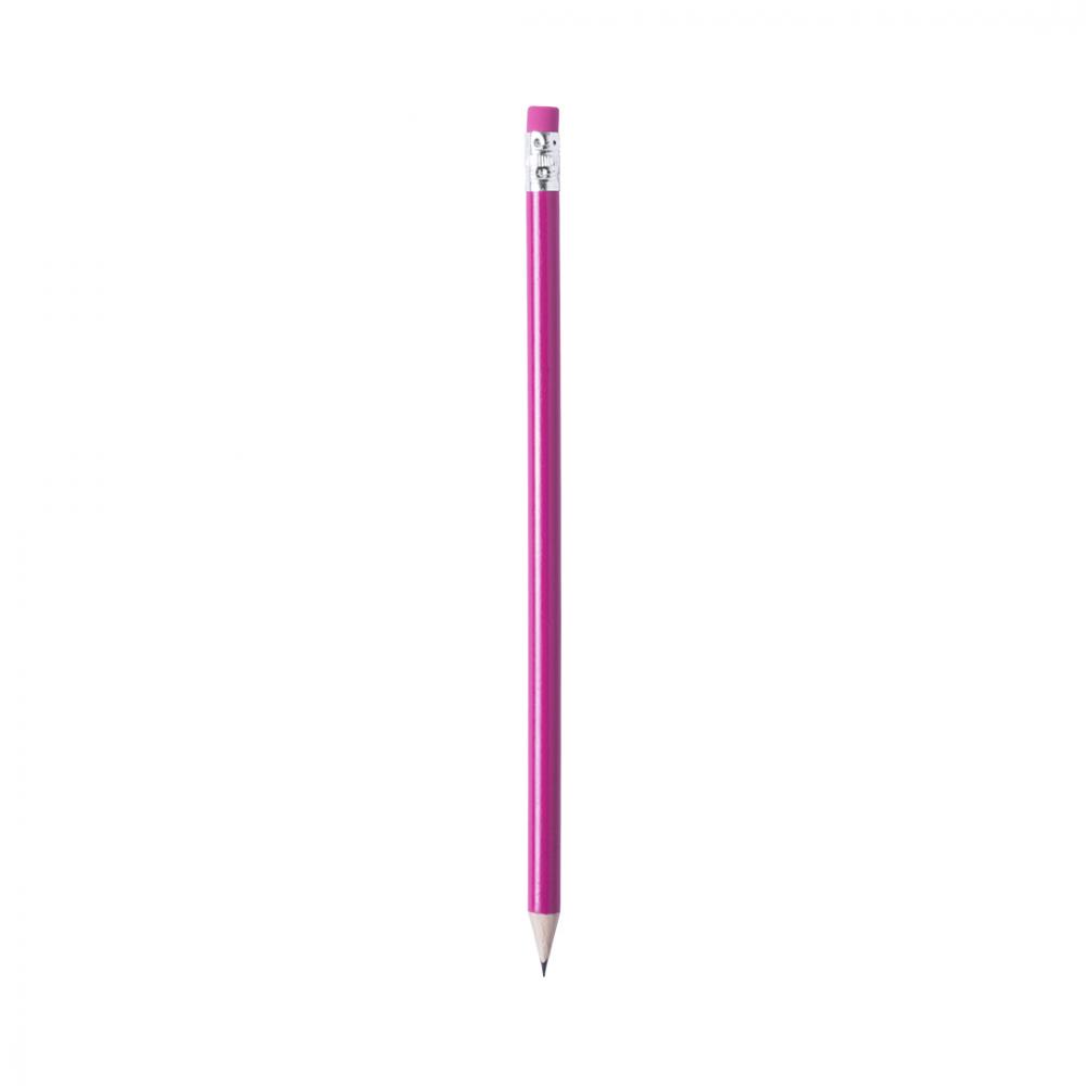 Деревянный карандаш с глянцевым покрытием. С круглым стволом и резиной соответствующего цвета. Выпускается в широкой цветовой гамме. Поводок черного цвета и заостренный наконечник. Дерево