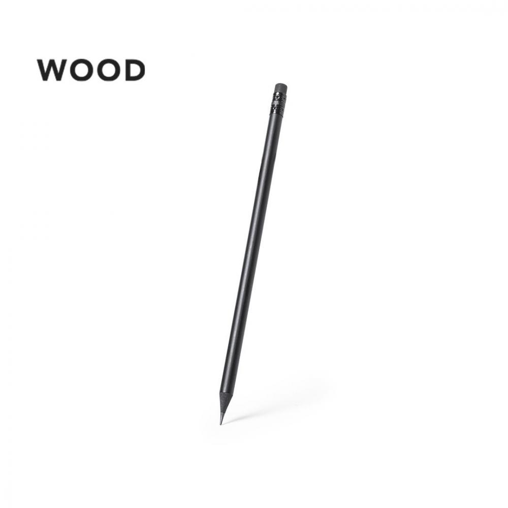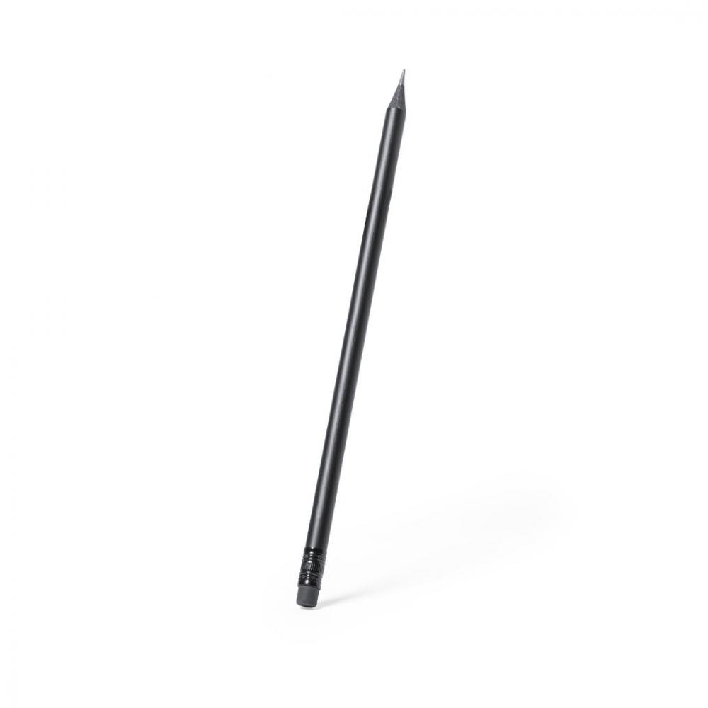Особенности Карандаш из натурального дерева с черной матовой отделкой. С ластиком, черным грифелем и заостренным кончиком. Дерево