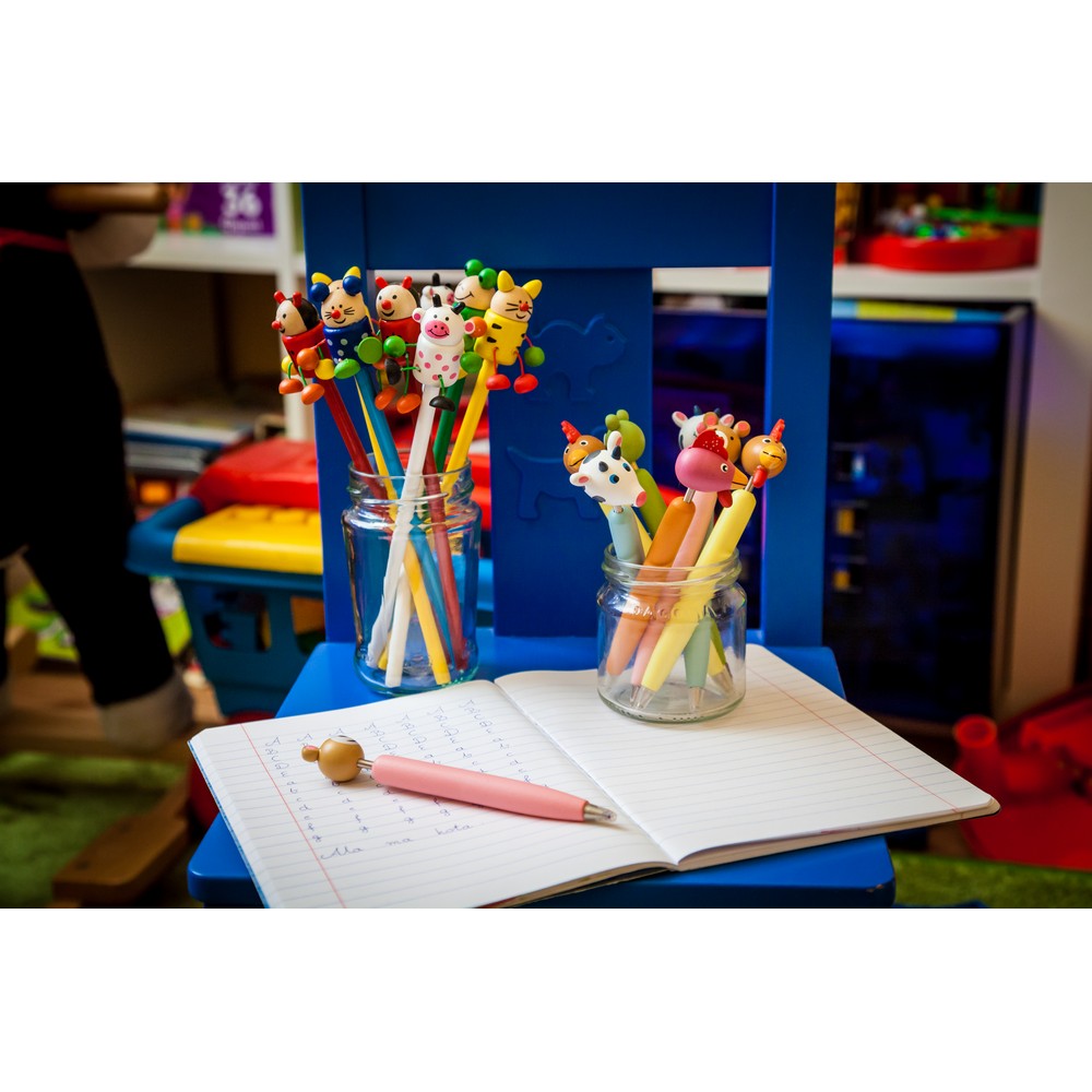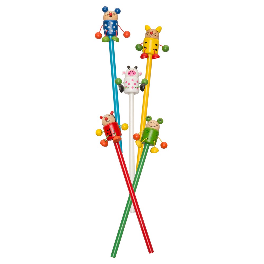 Карандаш "питомец" с цветным стержнем, наконечник не заточен, он поставляется в 5 различных дизайнах, продаваемых случайным образом: тигр, божья коровка, мышь, лягушка и корова, изделие из дерева и нейлона