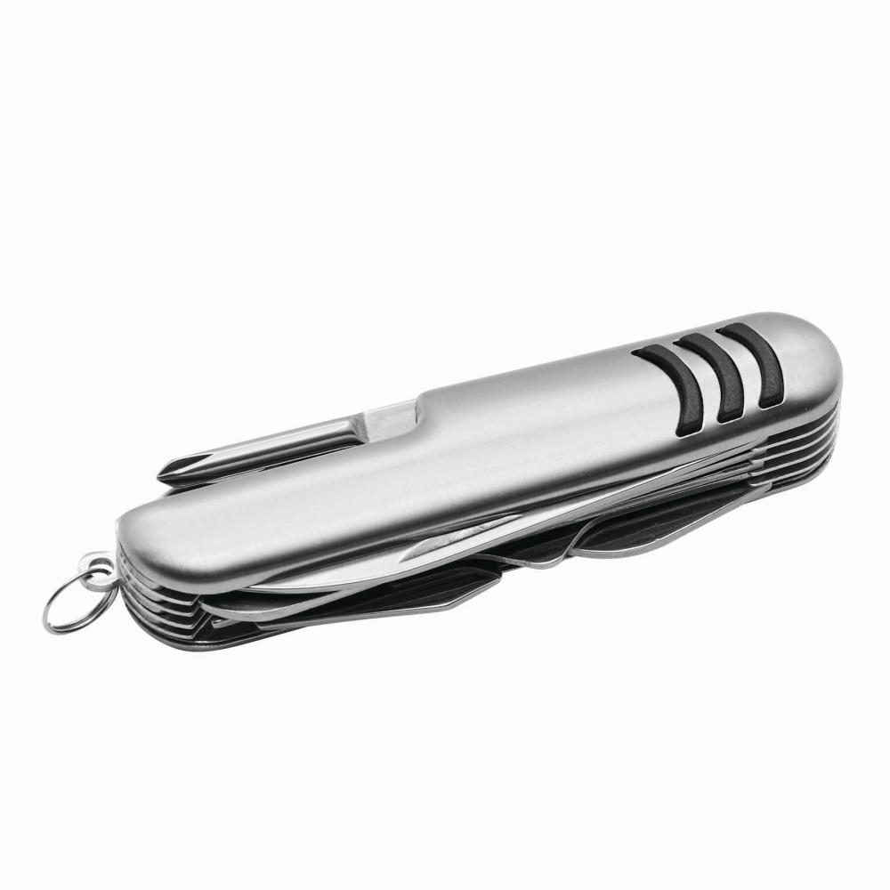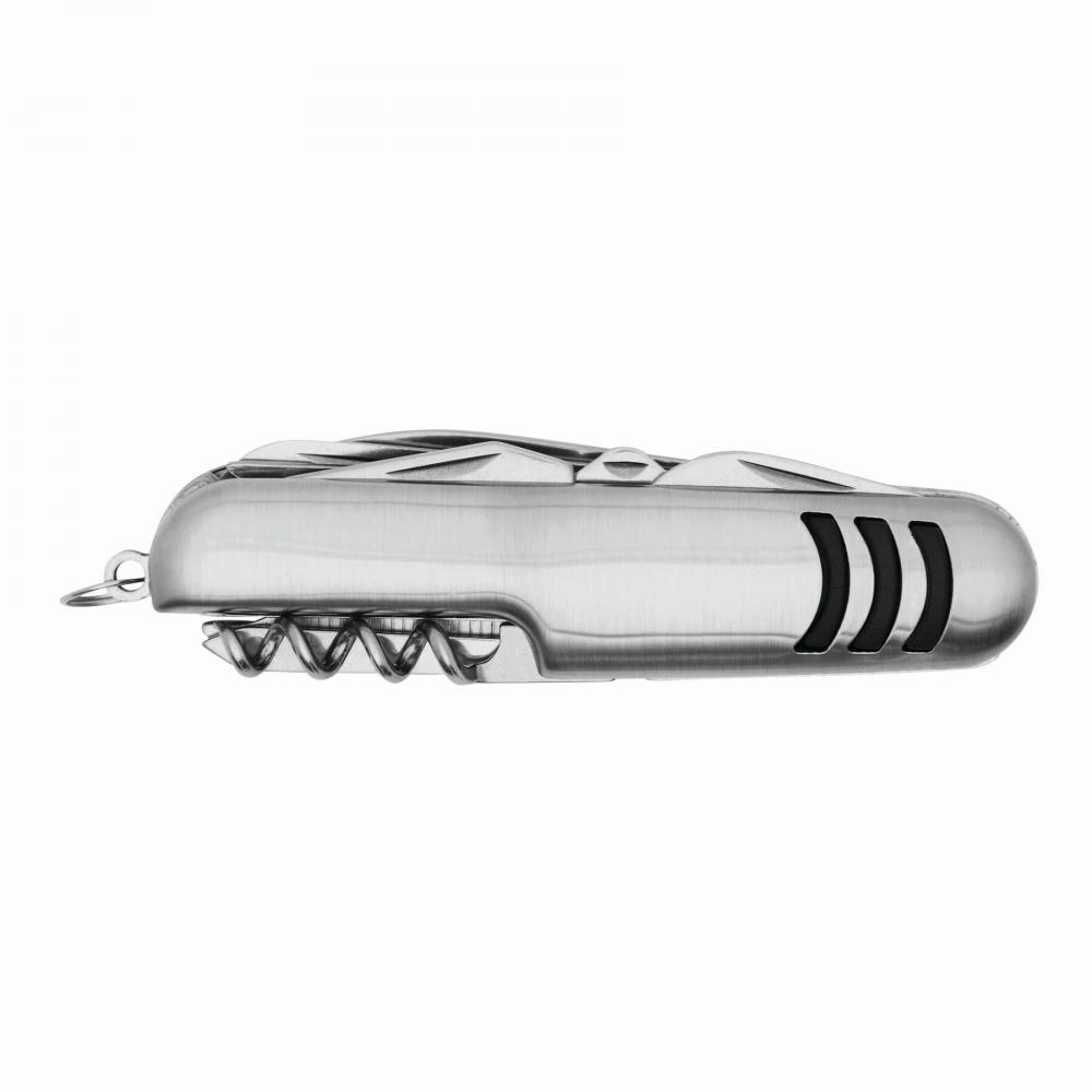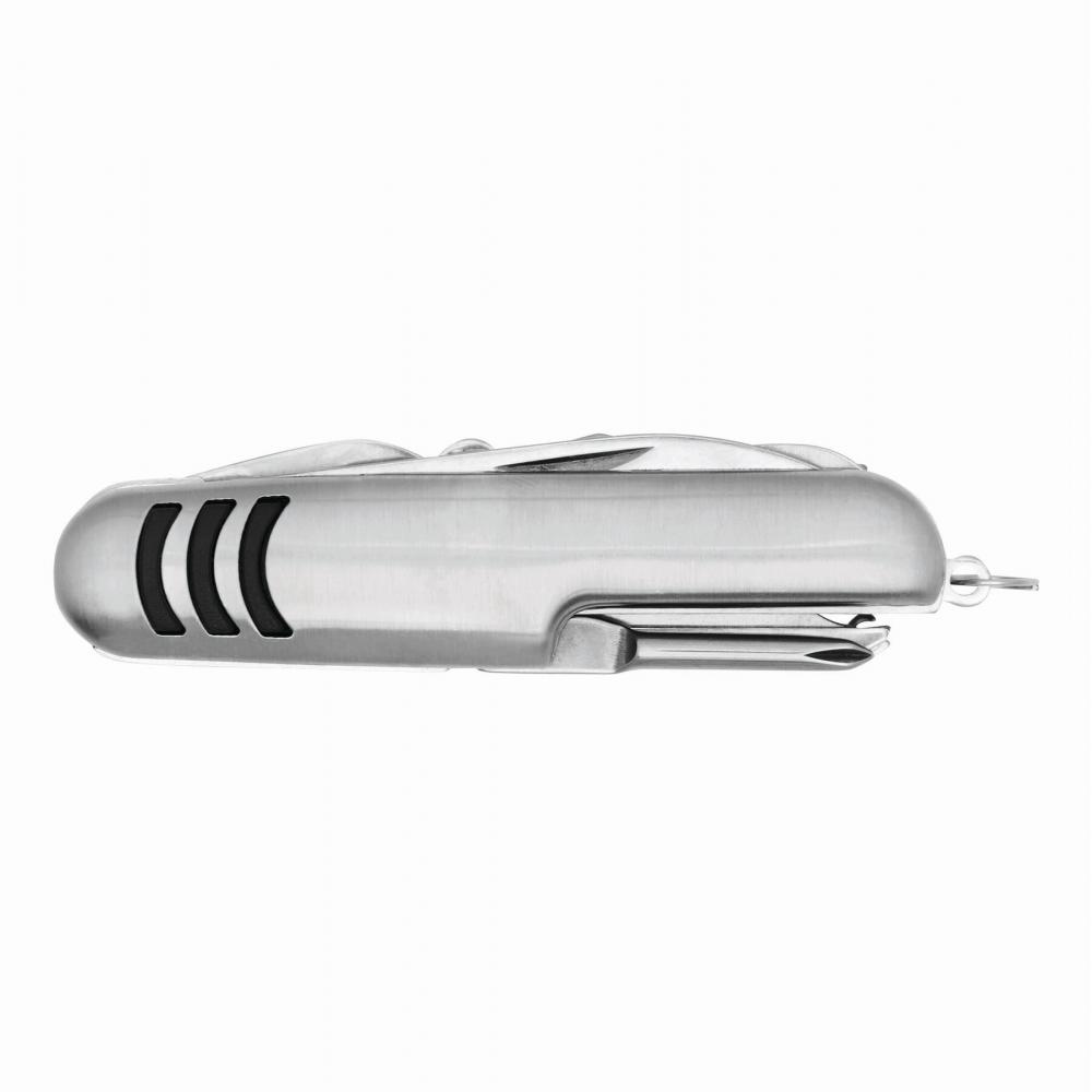 Карманный нож TRIO на 11 предметов с полосатым дизайном, включает открывашку для консервов, открывашку для бутылок, штопор, инструмент для прокалывания, пилочку для ногтей, отвертку Phillips, ножницы, 2 пилы, инструмент для удаления чешуи, шило, сплайсер и кольцо для ключей