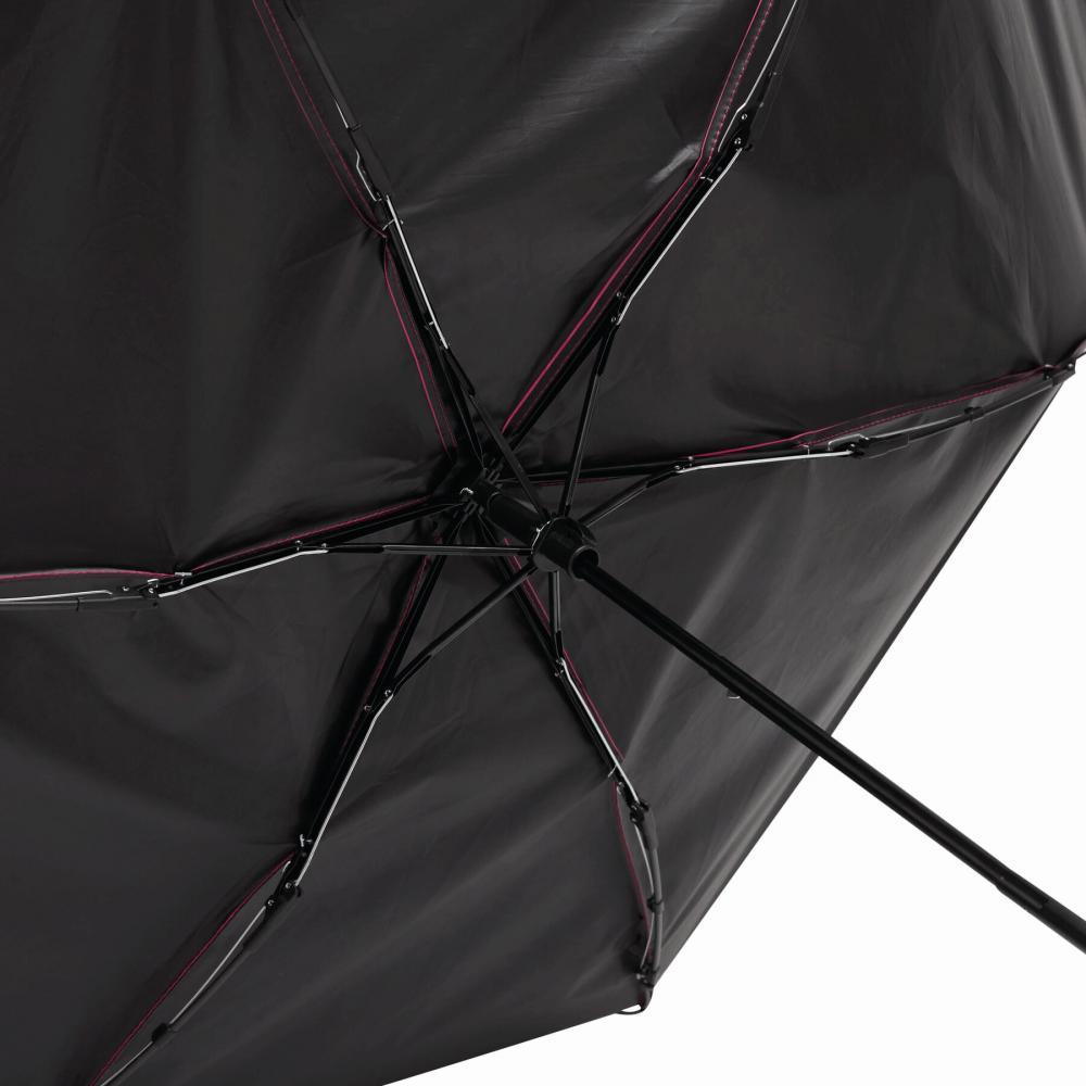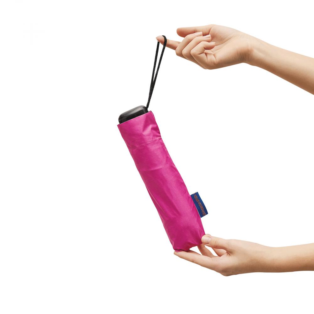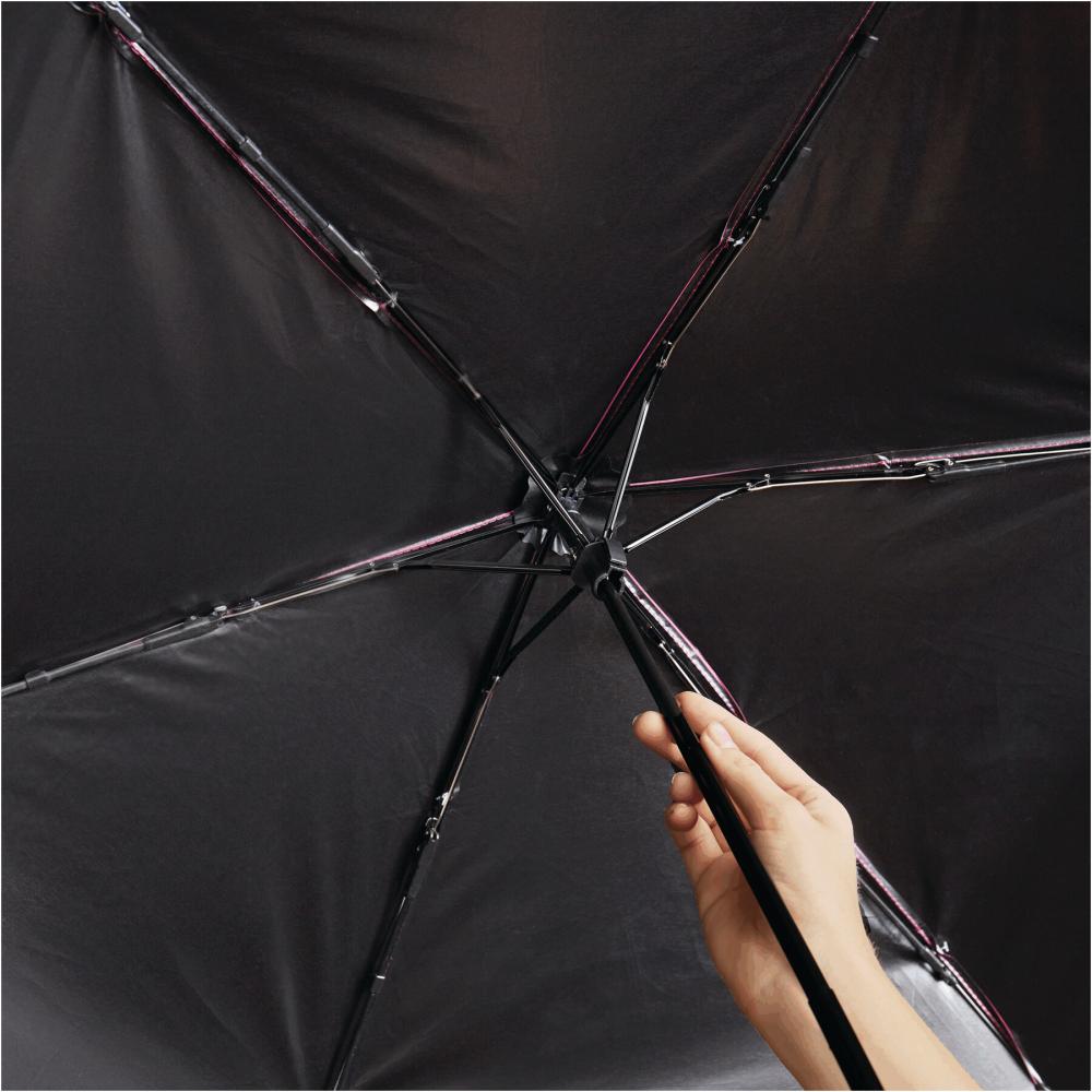 Карманный зонт SUNDANCE, с защитой от ультрафиолета, чехол соответствующего цвета: трехсекционный металлический стержень с ребрами из металла/стекловолокна, черная пластиковая ручка с петлей, козырек из полиэстера pongee UV50+, внутренняя поверхность покрыта черным лаком, большая застежка на липучке.