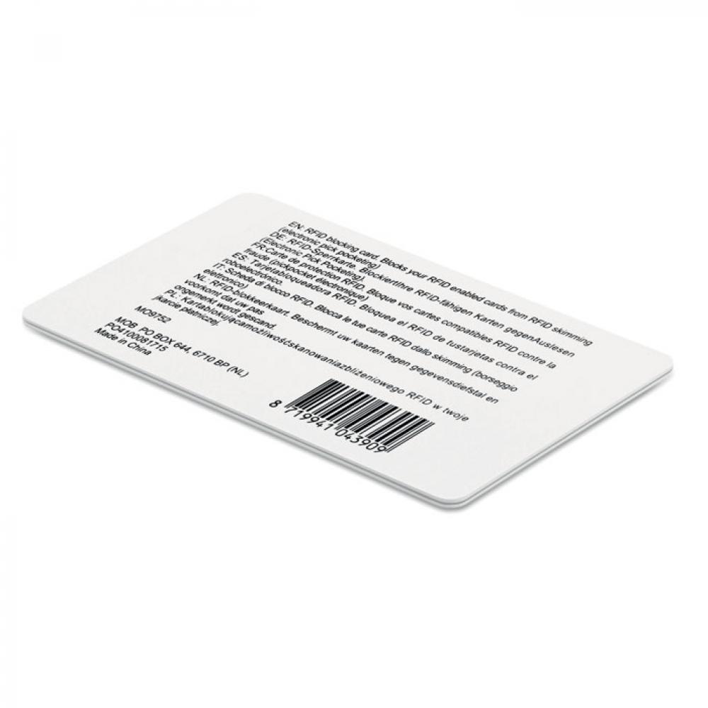 Карта, блокирующая RFID сигнал. Алюминиевый слой внутри этой карты блокирует все проходящие радиочастоты. Все остальные карты, расположенные под этой блокирующей картой, будут защищены от скимминга (электронное воровство). (0,76 mm).