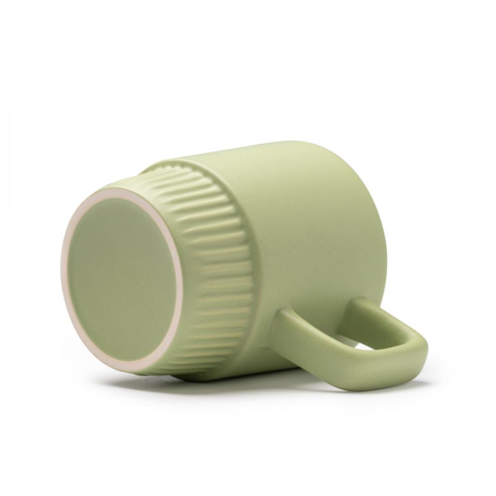 Керамическая кружка с дизайном скошенного дна. Вместимость: 300 мл. Представлена в белой коробке.