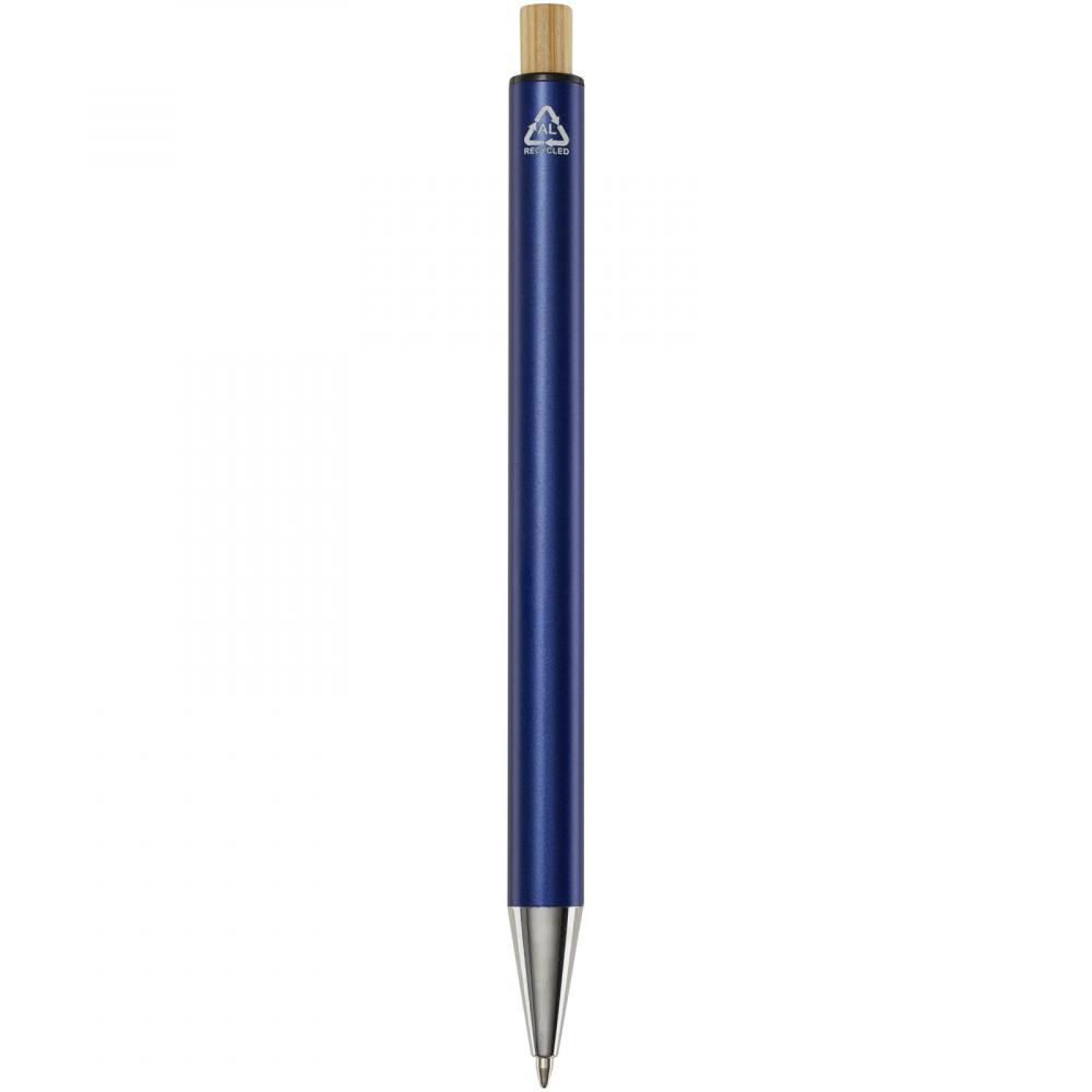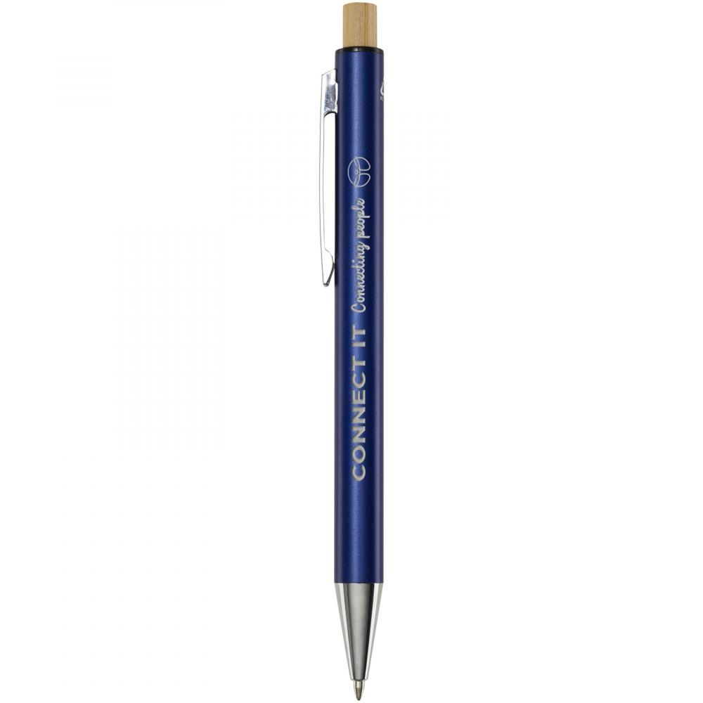 Ручка-роллер Cyrus изготовлена из переработанного алюминия, что требует меньше энергии по сравнению с производством алюминия из сырья. Это также уменьшает количество отходов на свалках и помогает сохранять природные ресурсы, стремясь сократить выбросы парниковых газов. Кнопка выполнена из бамбука. Цвет чернил: синий. Длина письма: 800 метров. Размер пера: 1,00 мм.