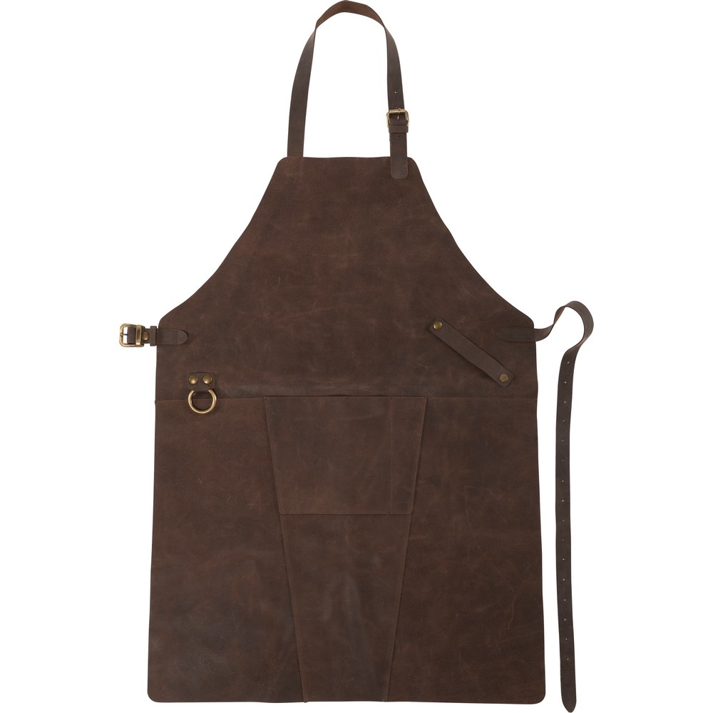 Кожаный кухонный фартук с передним карманом и металлическими элементами