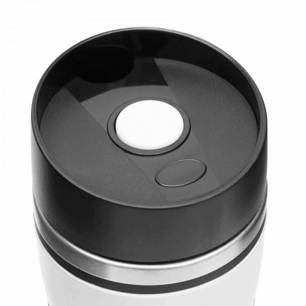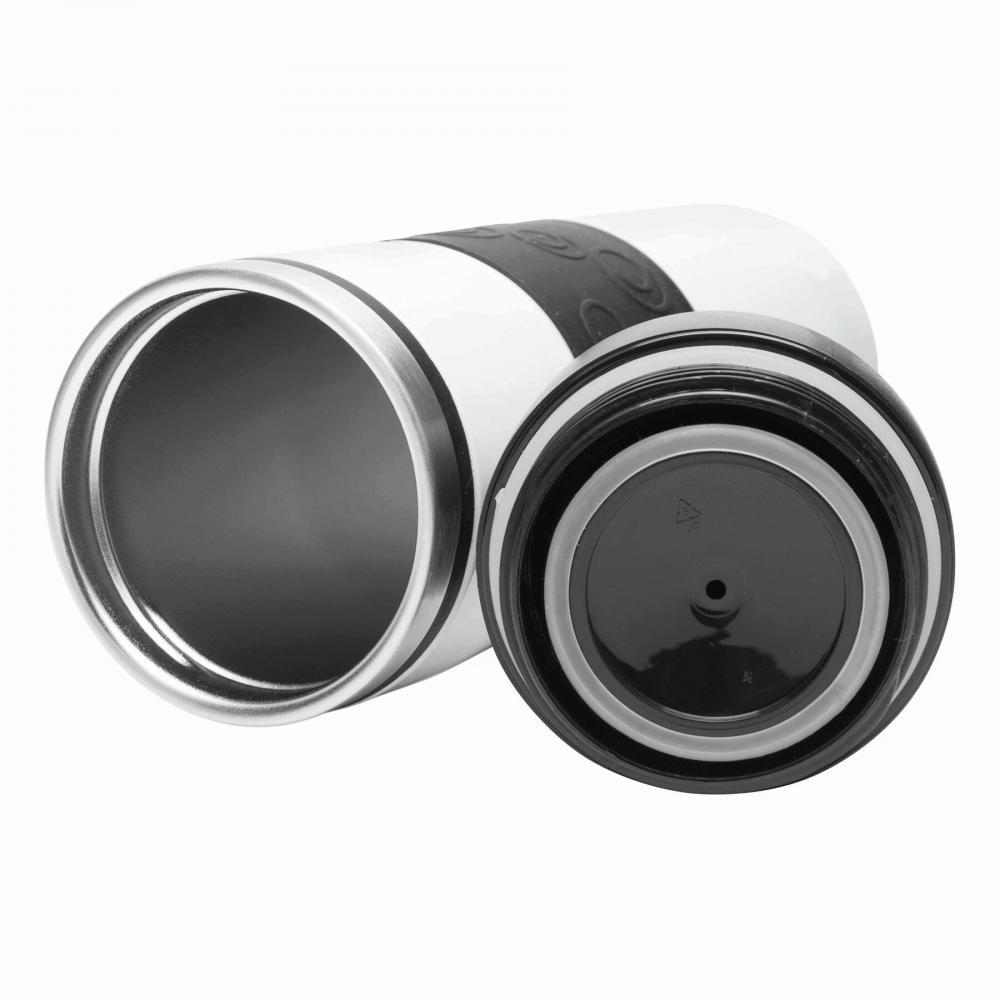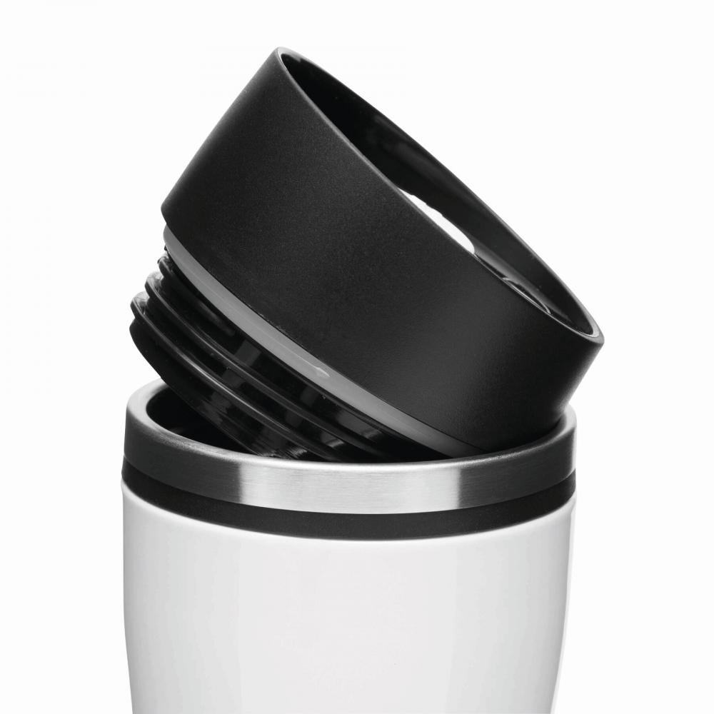 Дорожная кружка ARABICA с двойными стенками из нержавеющей стали внутри и снаружи, пластиковая крышка контрастного цвета с надежно завинчивающейся крышкой, кнопка ОТКРЫТЬ / ЗАКРЫТЬ и встроенное отверстие для питья, цветная резиновая втулка для лучшего захвата и прорезиненная подставка для хорошей поверхности адгезия, ок. Емкость 400 мл