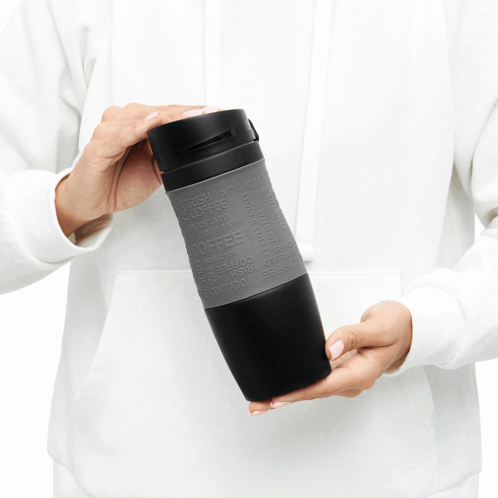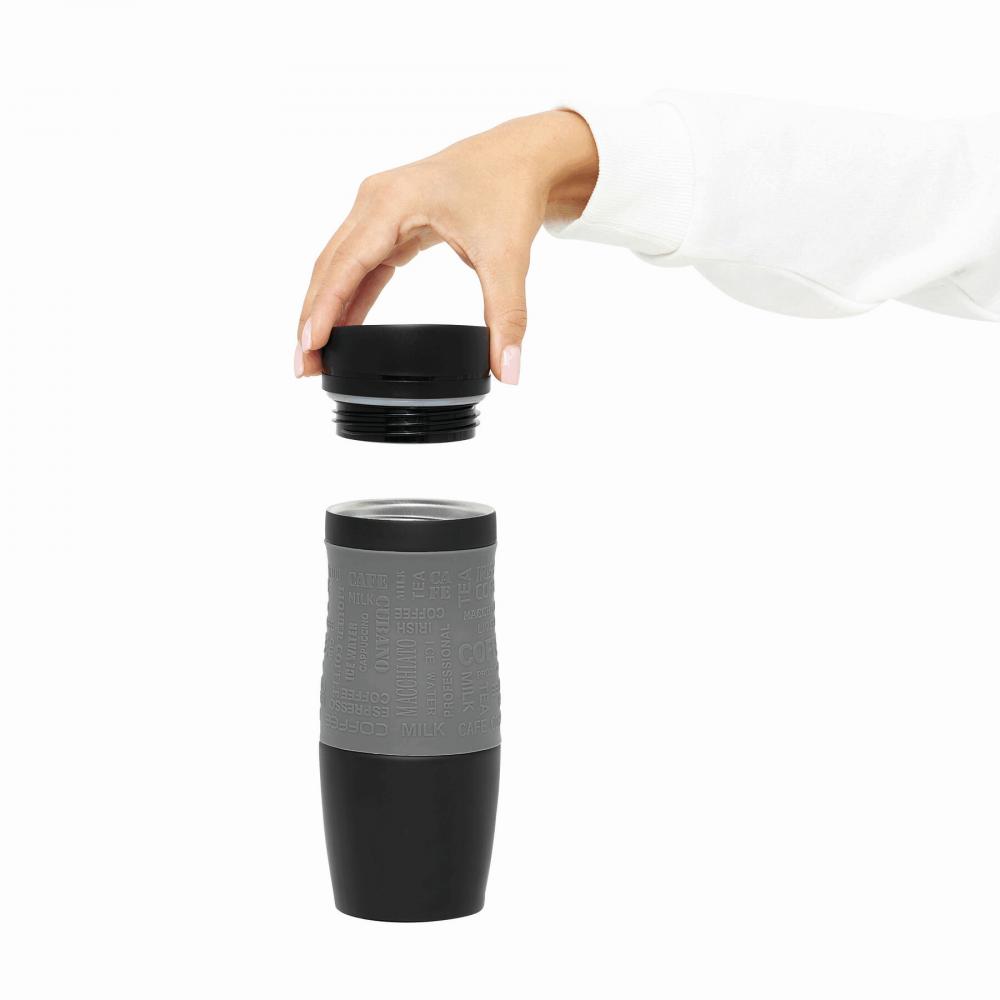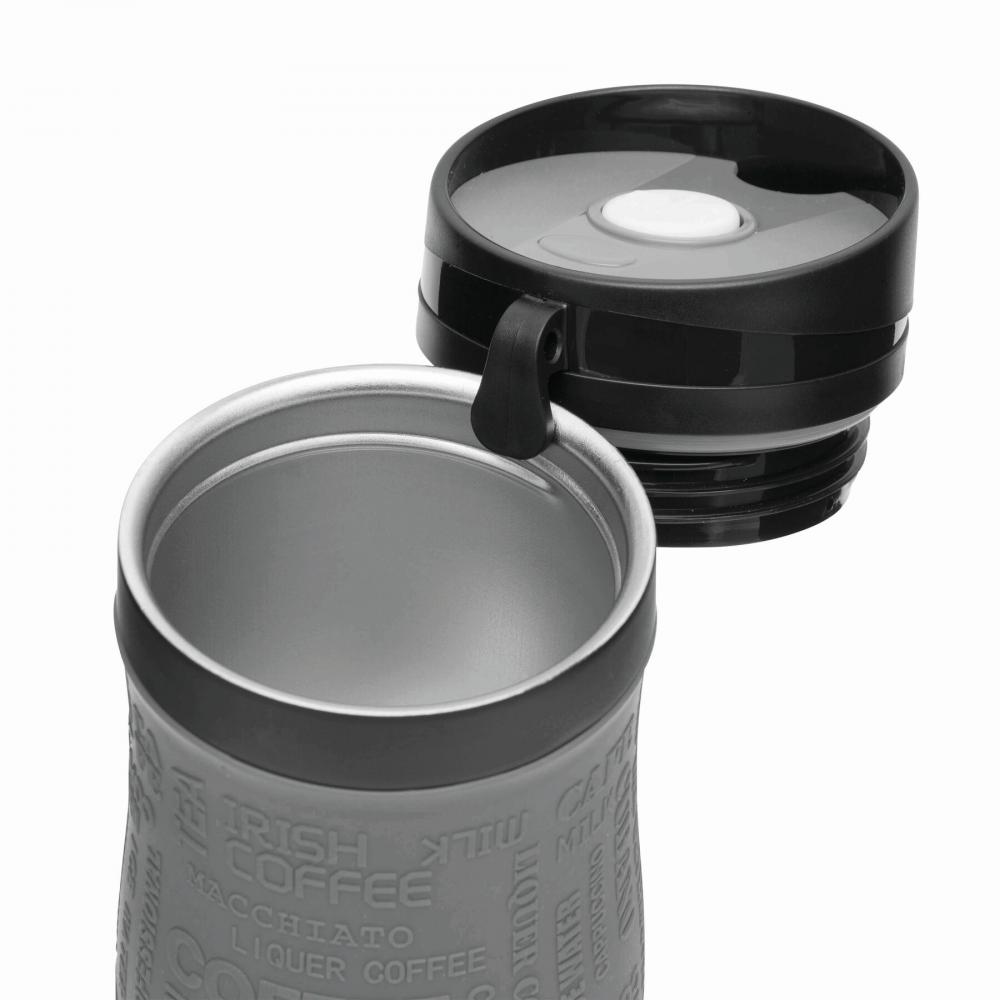 Дорожная кружка GOLDEN DREAM с двойными стенками: внутри и снаружи из нержавеющей стали, пластиковая крышка с надежно завинчивающейся крышкой, кнопка ОТКРЫТЬ / ЗАКРЫТЬ и встроенное отверстие для питья - крючок снаружи для крепления крышки, цветная силиконовая втулка с резиновым покрытием для лучшее сцепление, прибл. Емкость 380 мл, в подарочной коробке