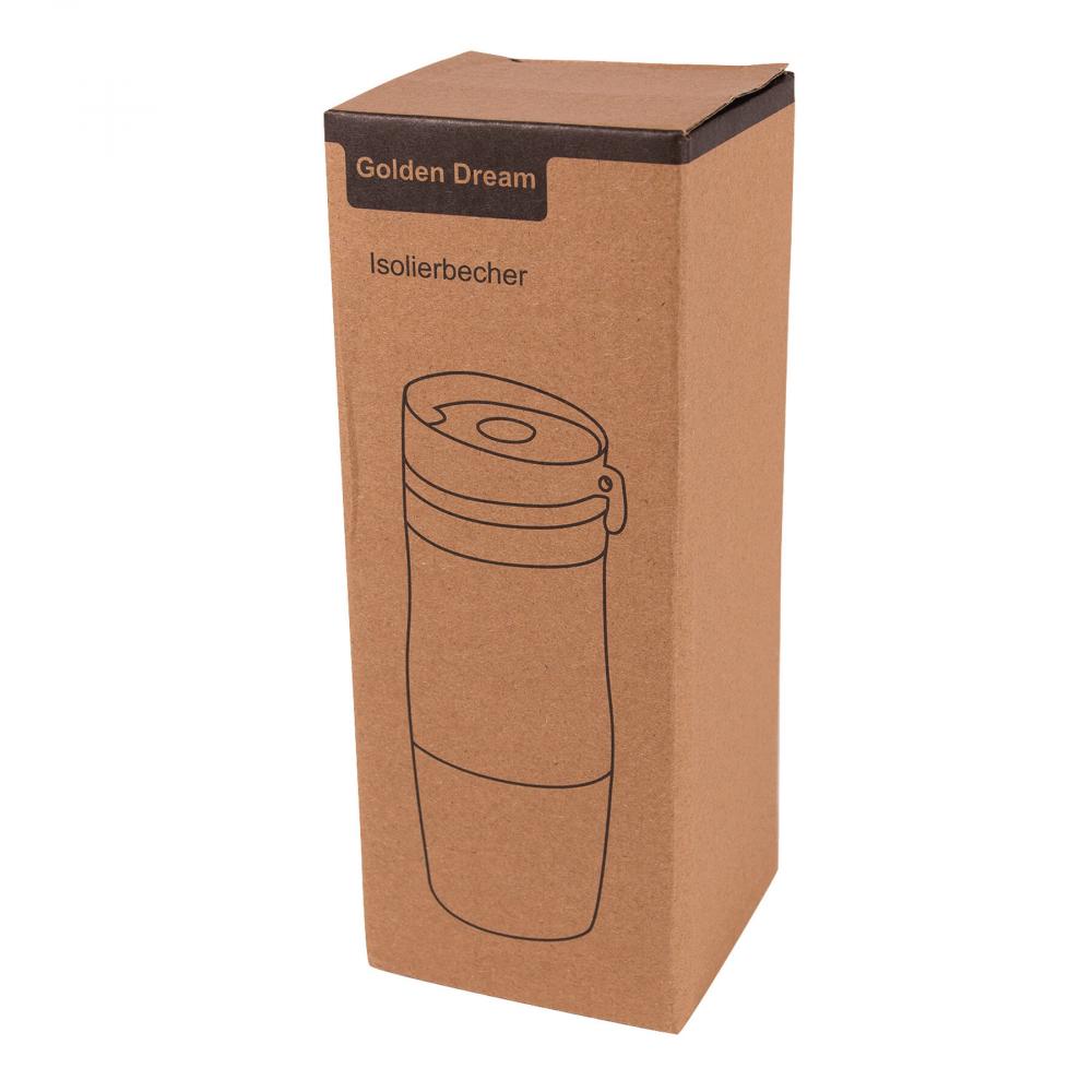 Дорожная кружка GOLDEN DREAM с двойными стенками: внутри и снаружи из нержавеющей стали, пластиковая крышка с надежно завинчивающейся крышкой, кнопка ОТКРЫТЬ / ЗАКРЫТЬ и встроенное отверстие для питья - крючок снаружи для крепления крышки, цветная силиконовая втулка с резиновым покрытием для лучшее сцепление, прибл. Емкость 380 мл, в подарочной коробке