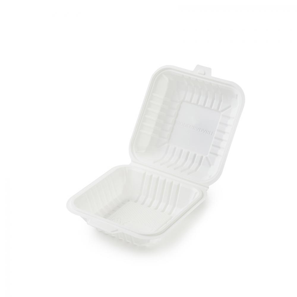 Когда вы отправляетесь на пикник или собираетесь в дальнюю автомобильную поездку, незаменимым атрибутом становятся одноразовые столовые приборы, стаканчики, тарелки и контейнеры. После использования, их можно утилизировать собственными силами без вреда для окружающей среды. Кукурузный крахмал – основное составляющее посуды. Он имеет все необходимые свойства, а также абсолютно безопасен для здоровья человека. Его используют и в пищевой, и в медицинской, и в текстильной промышленностях. Стойкость к разным температурным режимам – одно из важных свойств биоразлагаемой посуды. Такая посуда выдерживает как низкие, так и высокие температуры. Ее можно использовать в микроволновой печи и морозильной камере. Безопасность и отсутствие вредных соединений – основное преимущество посуды из крахмала. Биоразлагаемая посуда не содержит пагубных веществ, не засоряет окружающую среду. Экологичная упаковка для продуктов, которая не выделяет в пищу примесей и запахов даже при нагревании. Контейнер для гамбургера из кукурузного крахмала (6 дюймов / 15 см).