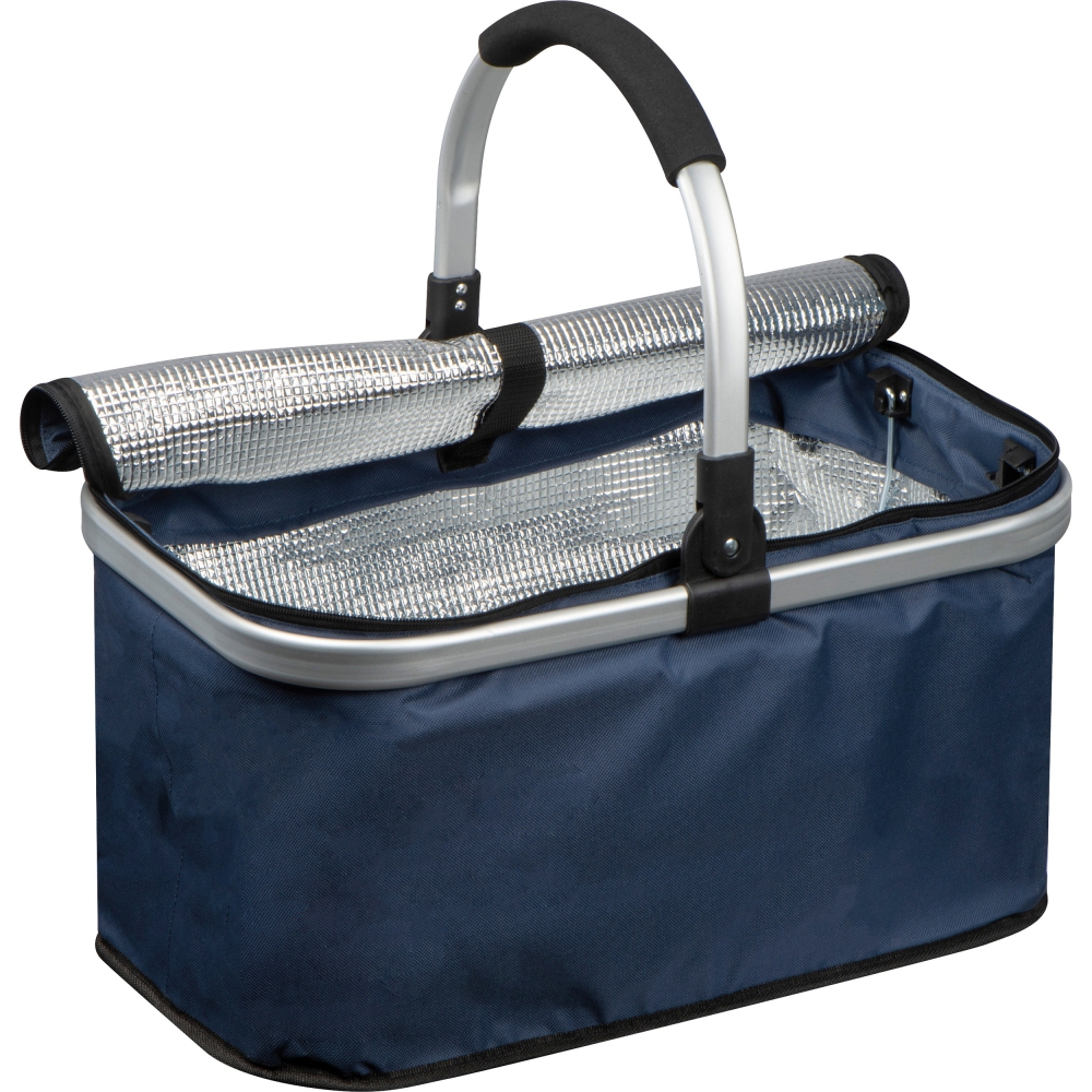 Удобная корзина для покупок из полиэстера с функцией охлаждения и складной алюминиевой ручкой для переноски. Корзина легко складывается и имеет грузоподъемность 15 кг.