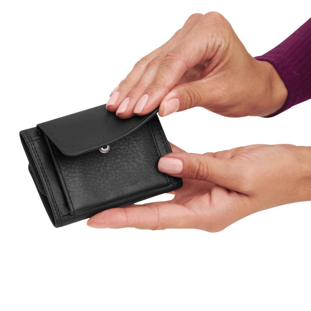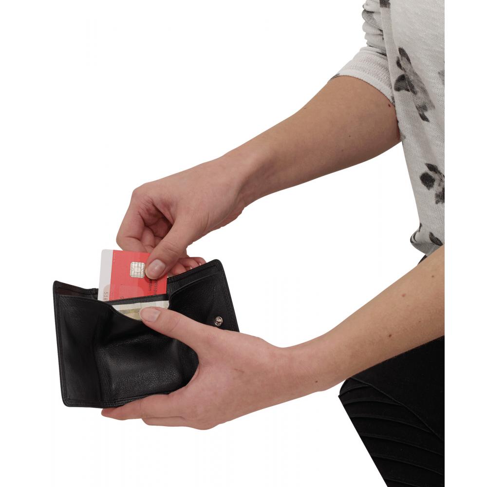 Кошелек CLUB из натуральной кожи: карман для 1 кредитной карты, 1 отделение для банкнот, 1 внешний карман для монет на кнопке