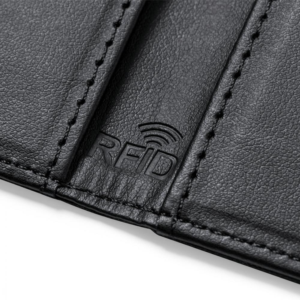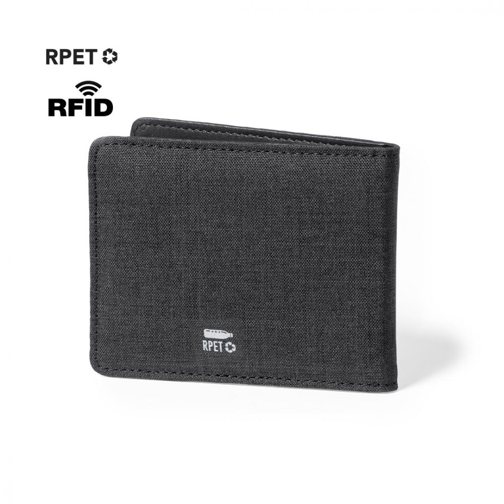 Особенности Элегантный бумажник и держатель для карт из полиэстера RPET с черной отделкой. Внутри с 6 независимыми отделениями для карт и большим кошельком. Технология безопасности RFID (радиочастотная идентификация), которая обеспечивает сохранность данных карты. С отличительной чертой RPET снаружи и RIFD внутри.Материал RPET изготовлен из переработанного пластика, чтобы стимулировать повторное использование пластиковых отходов и способствовать устойчивому развитию планеты. Защищенный RFID. 6 Отсеков Полиэфирный RPET