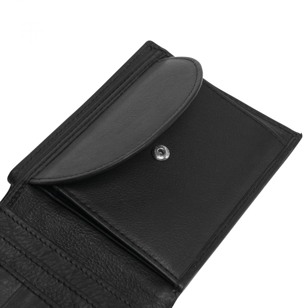 Кошелек из натуральной кожи DAX с внутренними карманами для карт, 1 сетчатым карманом для удостоверения личности, 2 большими карманами для купюр, 1 карманом для монет с кнопкой, овальной металлической пластиной для логотипа