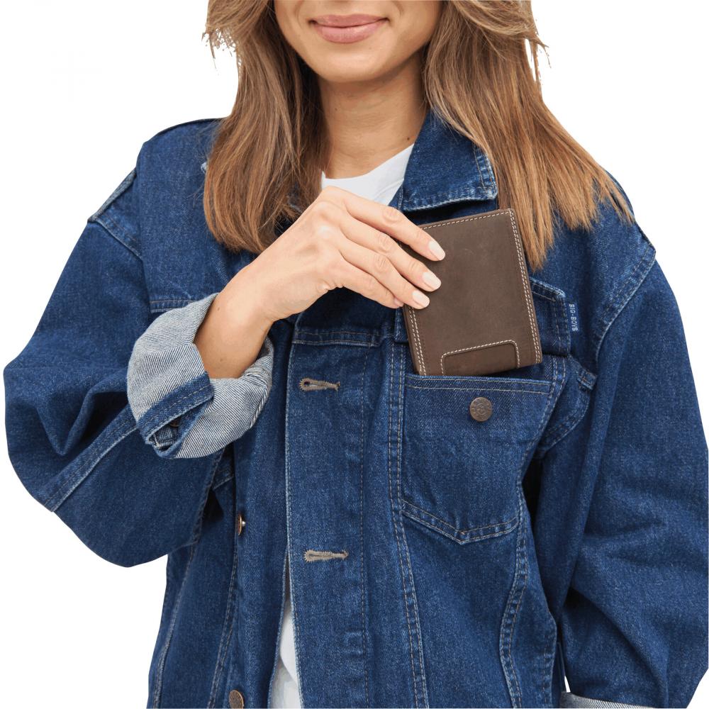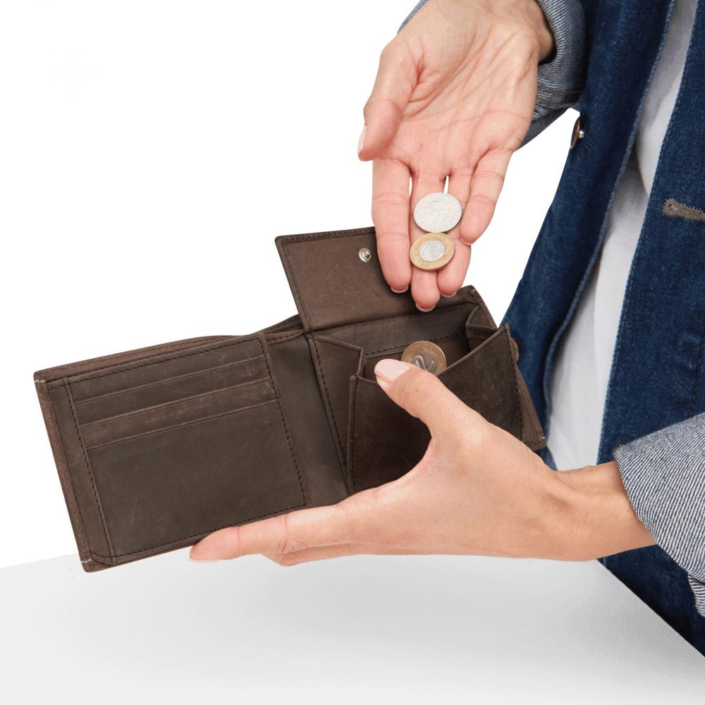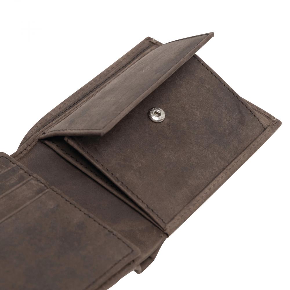 Кошелек из натуральной кожи WILD STYLE I: 6 карманов для карт, 2 кармана для банкнот, 1 карман для монет с застежкой на кнопку, 1 прозрачный сетчатый карман для удостоверения личности или водительских прав