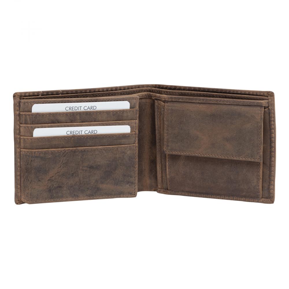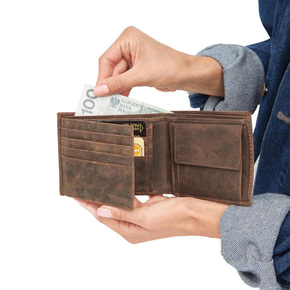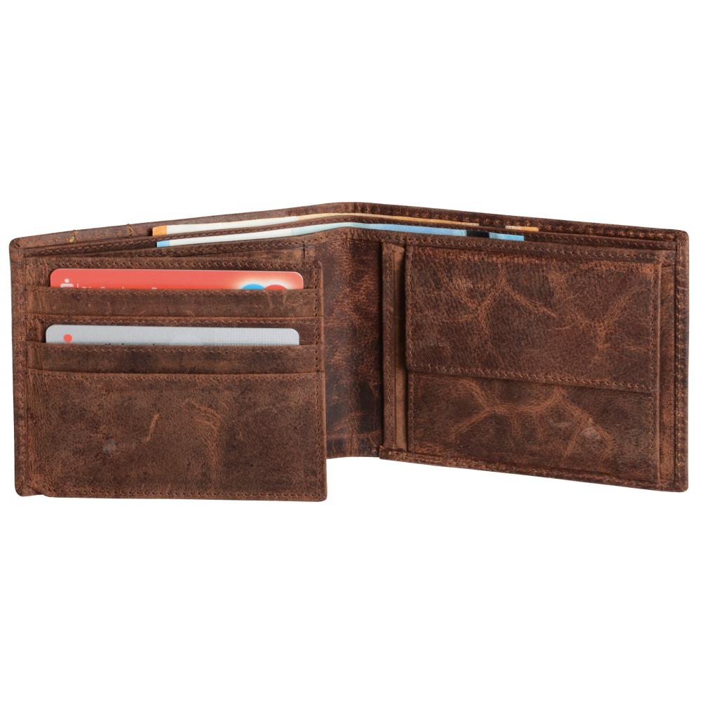 Кошелек из натуральной кожи WILDERNESS: 8 накладных карманов для кредитных карт, 2 кармана для банкнот, 1 карман для монет на кнопке, 1 сетчатый карман для удостоверения личности и водительских прав, 2 дополнительных кармана