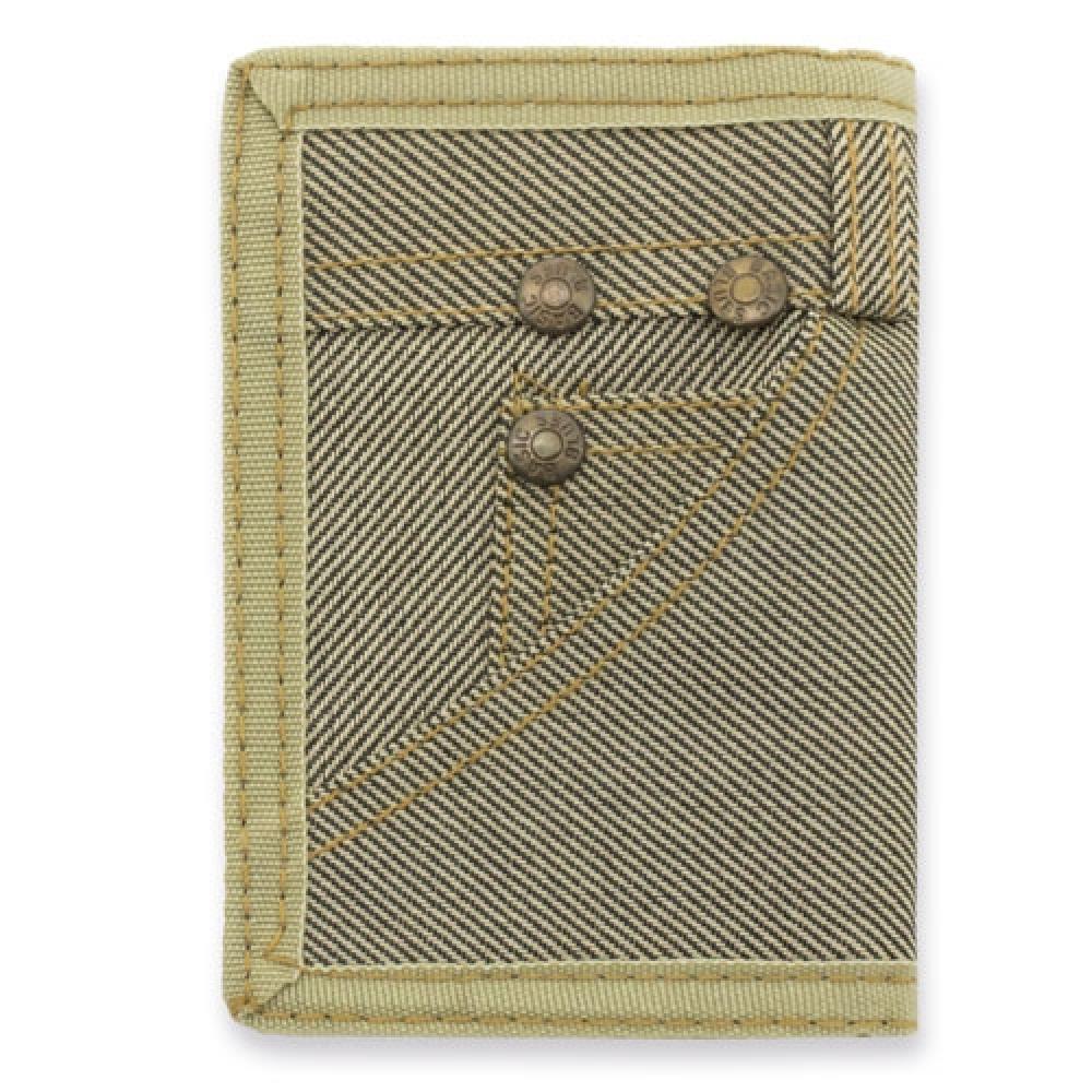 Джинсовый оригинальный и молодежный кошелек с дизайном и цветами в стиле "джинс", имитирующий карман ковбоя, включая заклепки, зажим для ремня и т.д. Внутри имеется несколько отделений для карт, одно из которых с окошком для удостоверения личности, а также кошелек на молнии. Доступен в коричневом, синем и красном цветах.