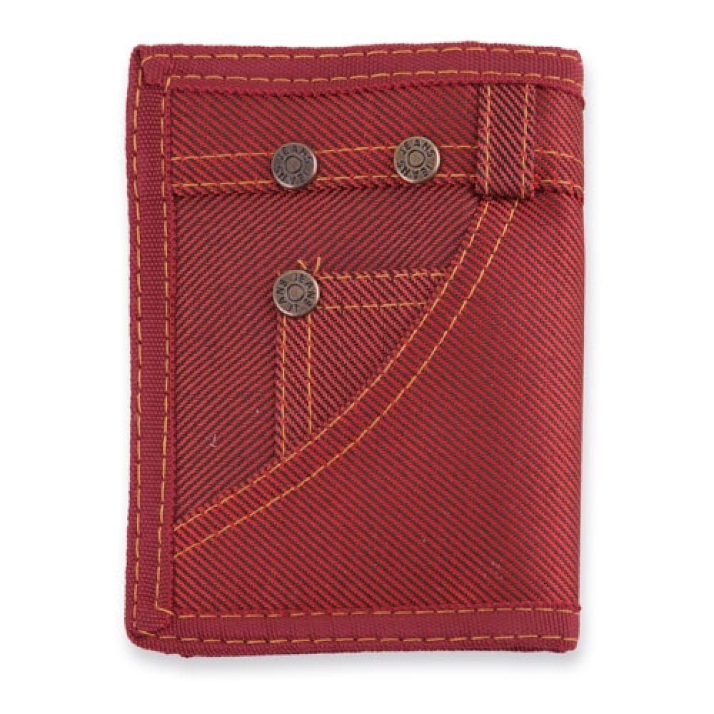 Джинсовый оригинальный и молодежный кошелек с дизайном и цветами в стиле "джинс", имитирующий карман ковбоя, включая заклепки, зажим для ремня и т.д. Внутри имеется несколько отделений для карт, одно из которых с окошком для удостоверения личности, а также кошелек на молнии. Доступен в коричневом, синем и красном цветах.