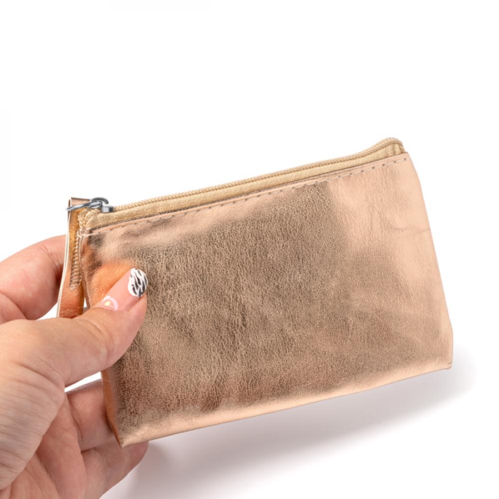 Кошелек из искусственной кожи с глянцевым покрытием, с соответствующей молнией и защелкой.