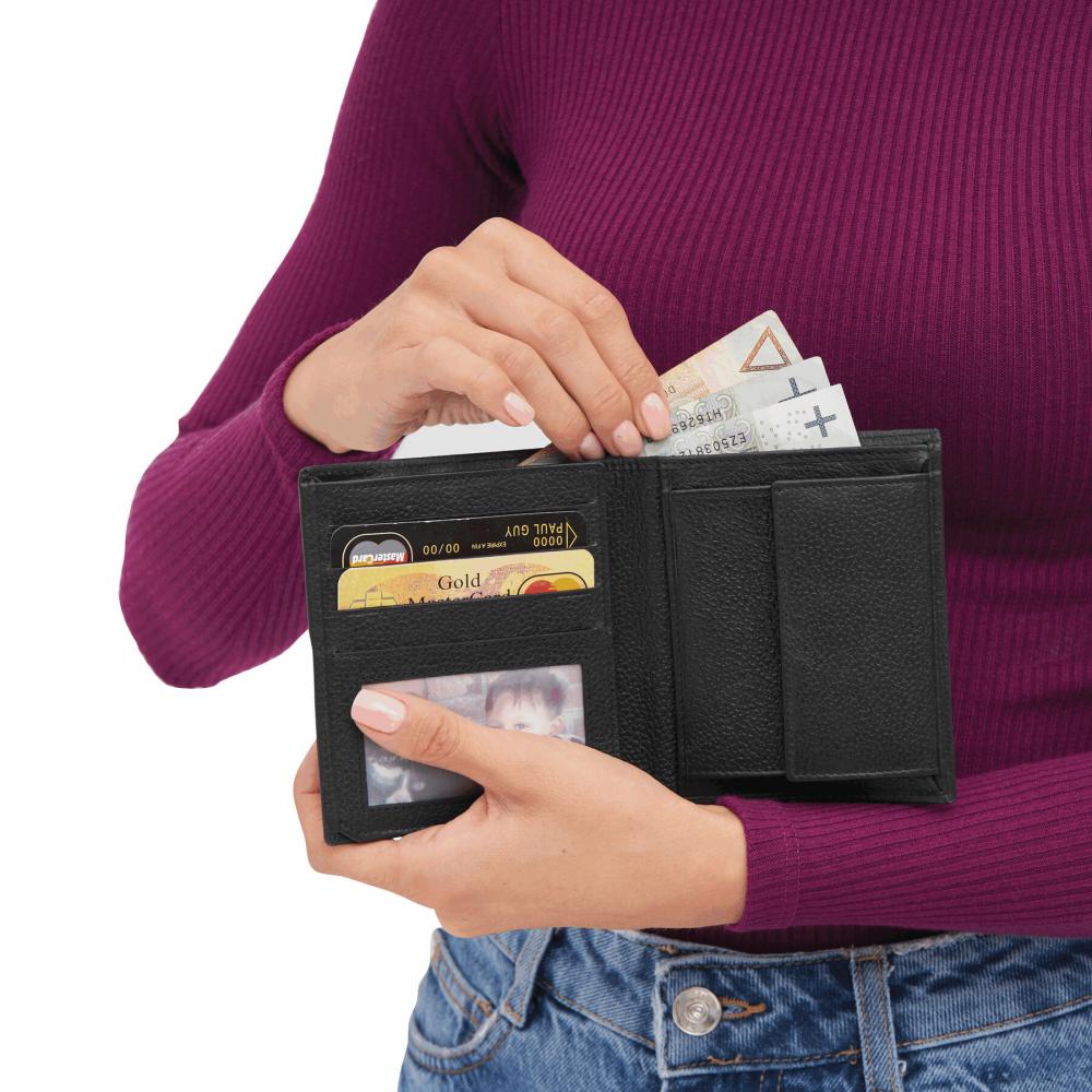 Кошелек MESSINA из натуральной кожи с различными накладными карманами и карманом для монет на кнопке.