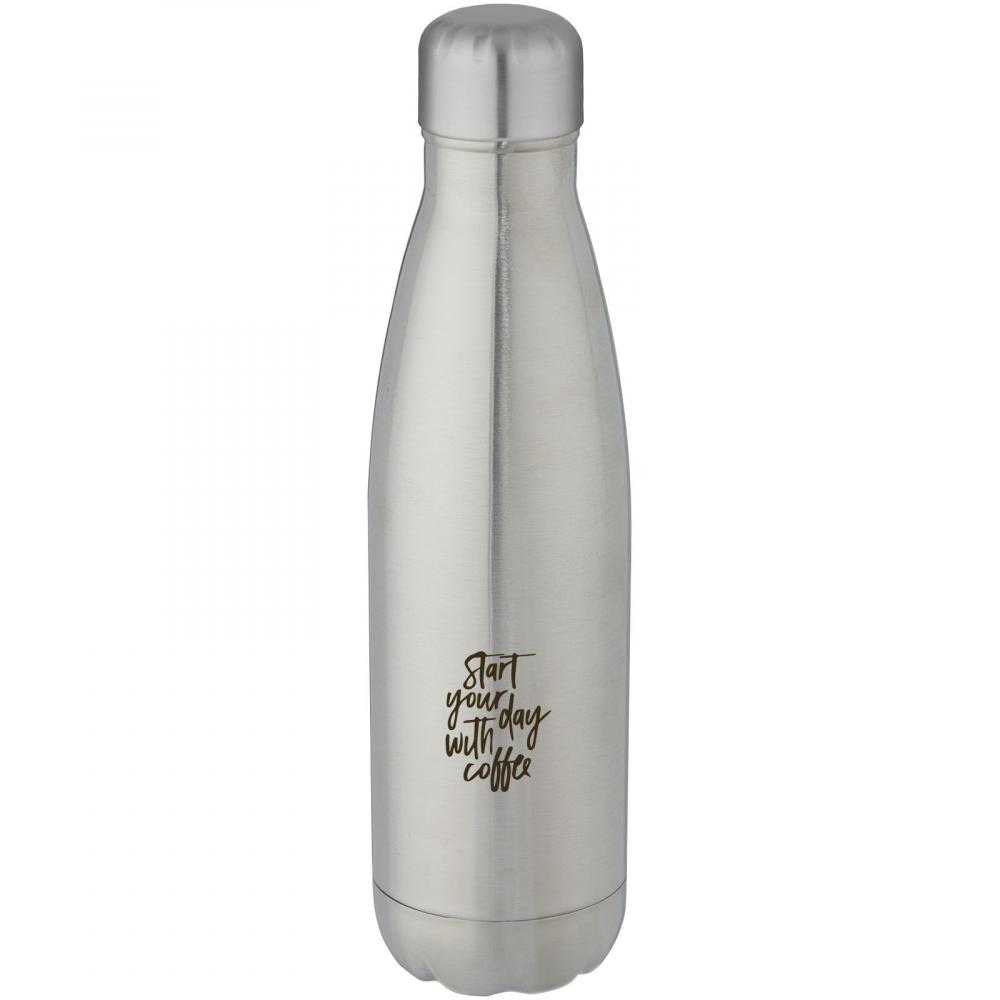 Вакуумная изолированная бутылка из сертифицированной переработанной нержавеющей стали с культовым дизайном, сохраняющая напитки горячими или холодными в течение нескольких часов. Оснащена основанием, которое подходит для большинства подстаканников, эта стильная бутылка для воды является идеальным рекламным предметом. Протестирована и одобрена в соответствии с немецким законодательством о безопасности пищевых продуктов (LFGB) и протестирована на содержание фталатов в соответствии с регламентом REACH. Объем составляет 500 мл. Поставляется в подарочной коробке из переработанного картона.