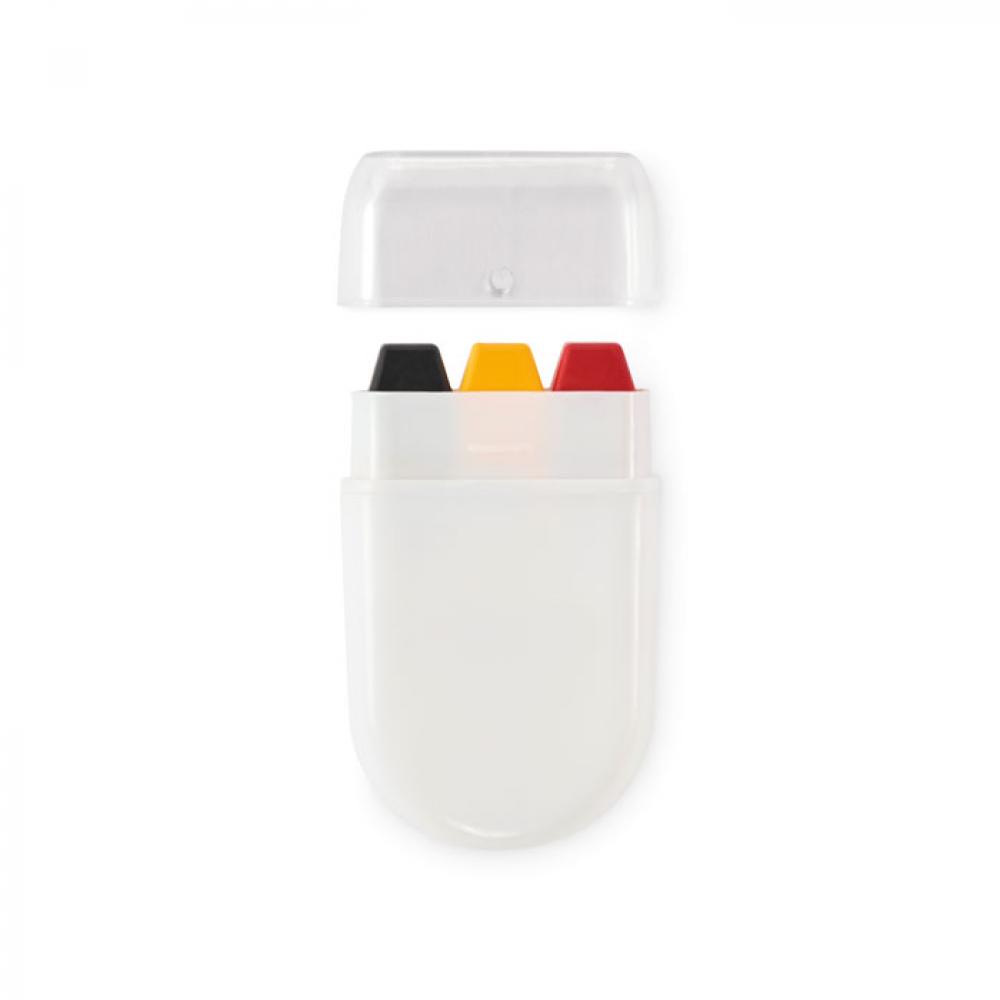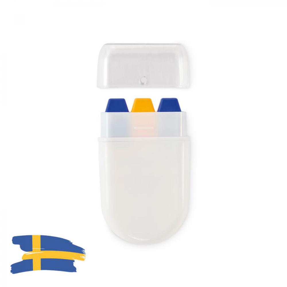 Краска для тела в виде стика в цветах национального флага с восковой краской в корпусе из полипропилена и крышкой из полистирола.