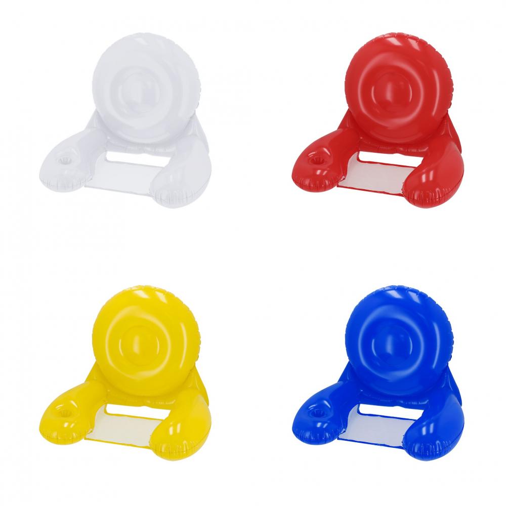 Оригинальное кресло с подлокотниками и спинкой из прочного однотонного и глянцевого ПВХ. С прочным сиденьем из белого полиэстера размером 56x32 см. С особым складыванием для удобной печати.