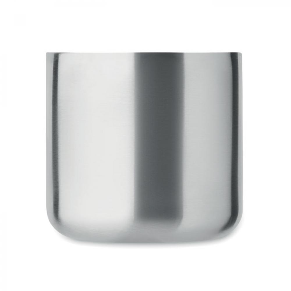 Кружка с двойными стенками из переработанной нержавеющей стали (90%) и обычной нержавеющей стали (10%) с деревянной ручкой. Объем: 350 мл.