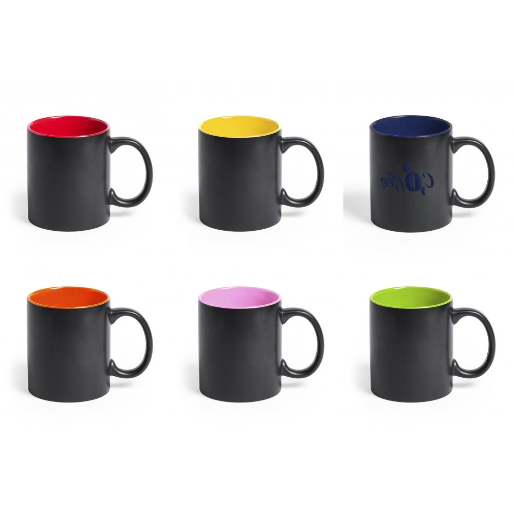 Высококачественная керамическая кружка объемом 350 мл. Снаружи черный, специально разработанный для лазерной печати, а внутри в широком диапазоне ярких тонов. При гравировке логотипа снаружи отображается цвет внутренней части кружки. Представлен в индивидуальной коробке. 350 мл