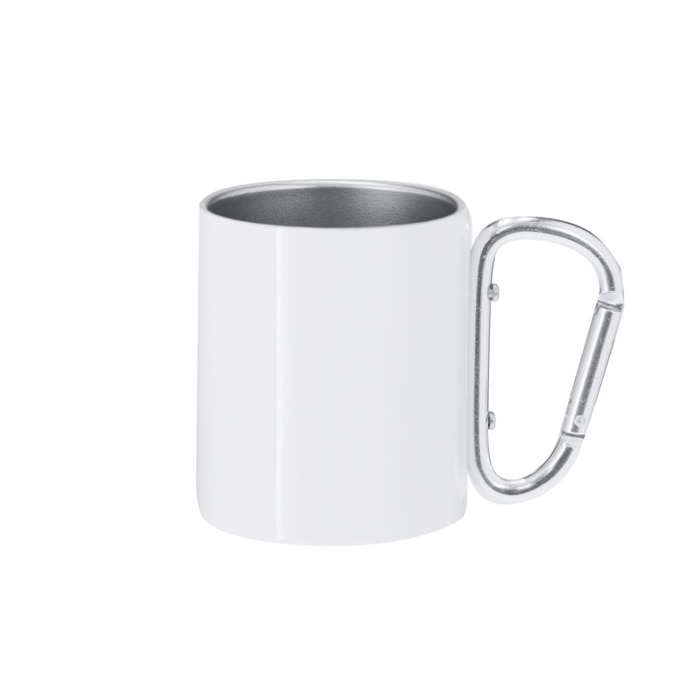 220 мл нержавеющая стальная кружка с блестящим белым металлическим покрытием и удобной ручкой в форме карабина для легкой транспортировки. Специально разработана для сублимации.