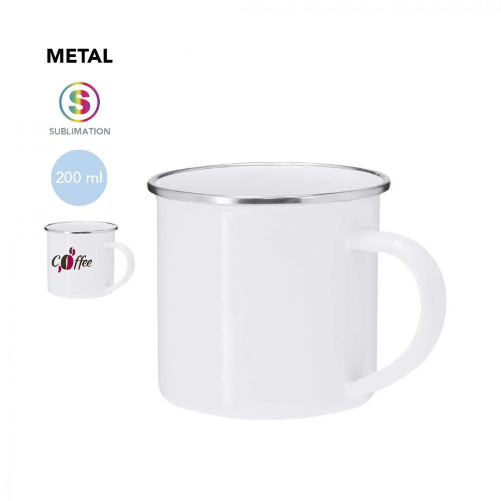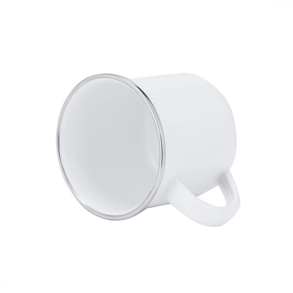 Металлическая кружка объемом 200 мл с винтажным дизайном и глянцевой белой отделкой с элегантным хромированным деталем на краю. Разработана специально для сублимации.