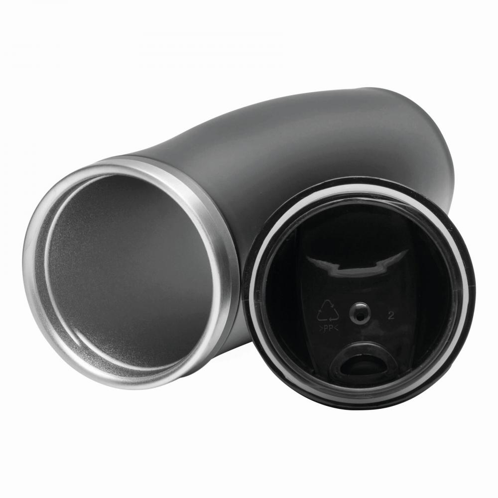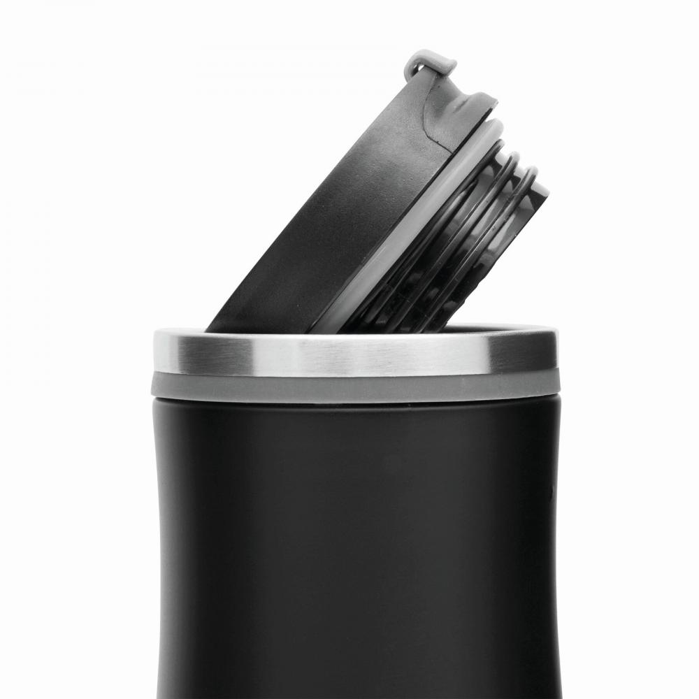 Дорожная кружка DARK CREMA с двойными стенками: внутри и снаружи из нержавеющей стали, пластиковая крышка с надежно завинчивающейся крышкой и встроенным откидным отверстием для питья, цветное резиновое кольцо сверху и резиновое покрытие снизу для хорошей адгезии к поверхности, вместимость прибл. 400 мл