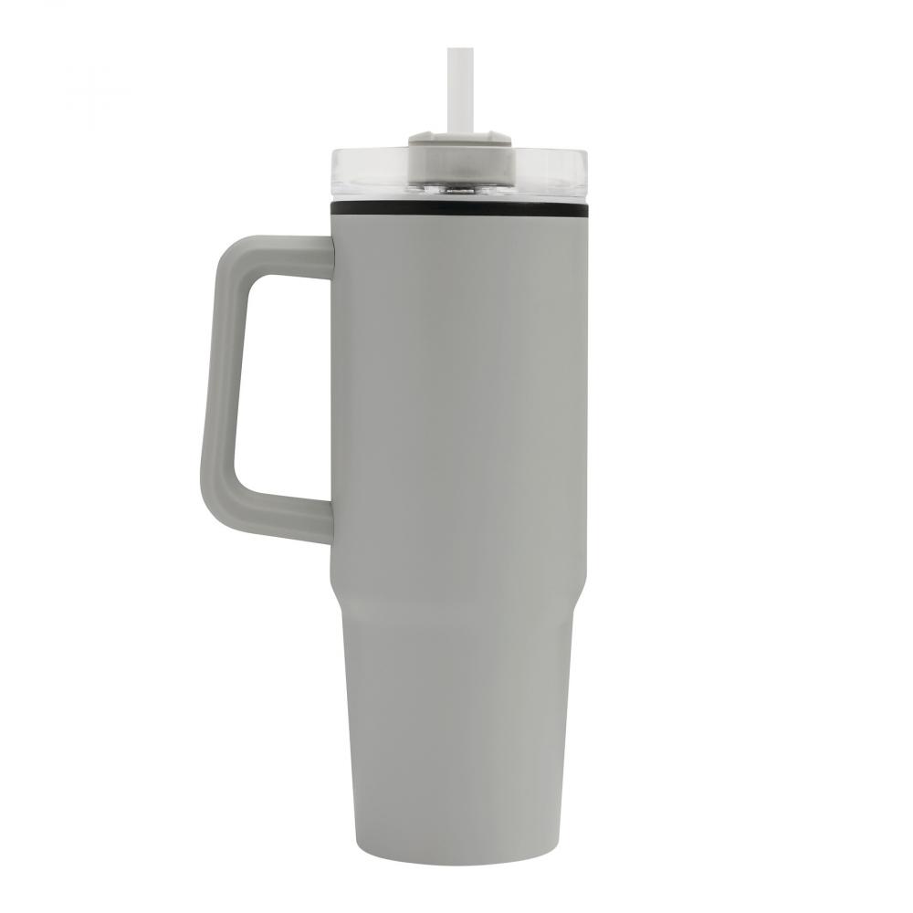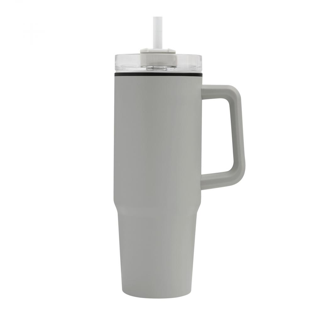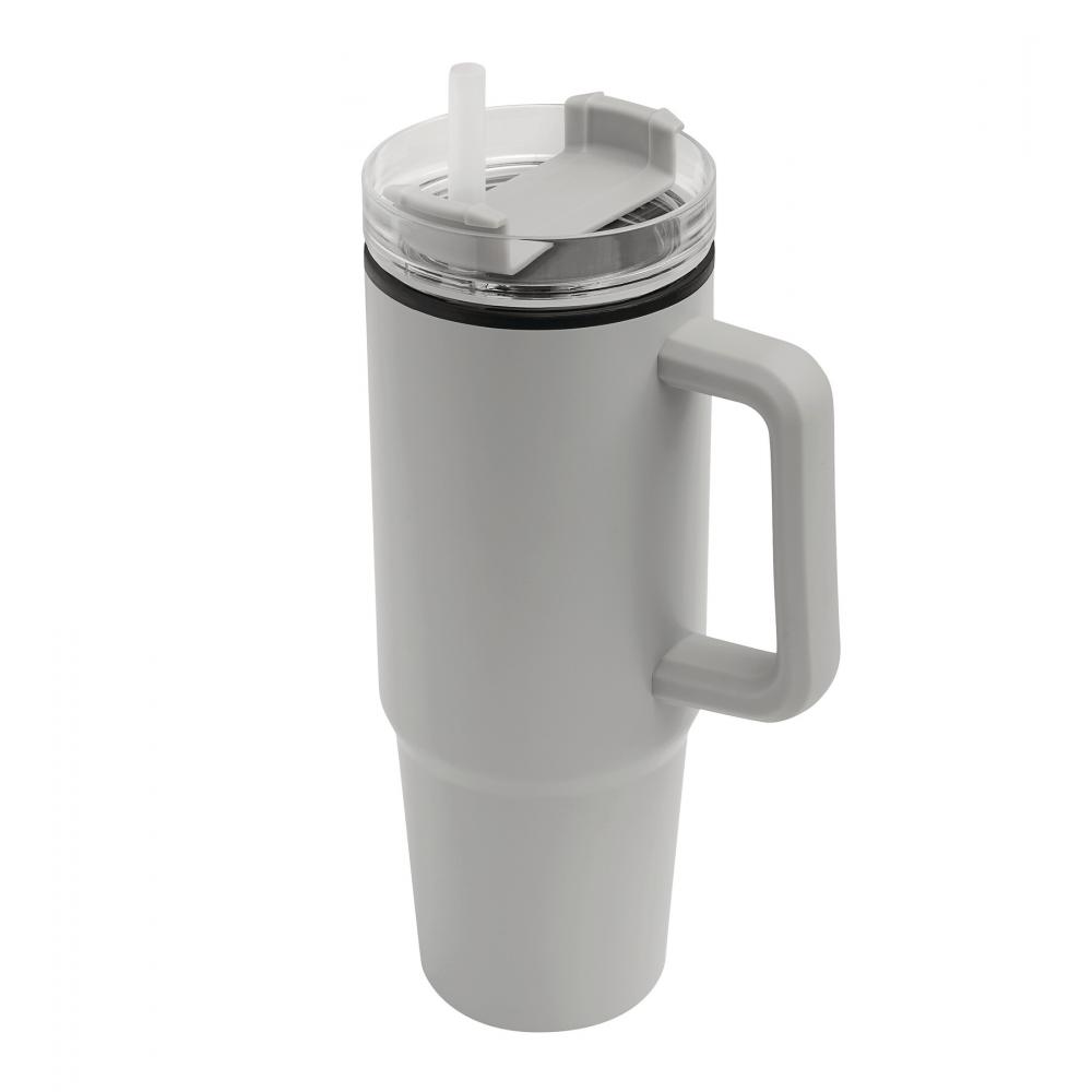 Кружка DRINK ULTY, двойные стенки: пластик внутри и нержавеющая сталь снаружи, с практичной ручкой, прозрачная пластиковая крышка с надежной завинчивающейся крышкой, силиконовое уплотнительное кольцо, отверстие для питья с вращающейся крышкой и прозрачной соломинкой, объем примерно 900 мл