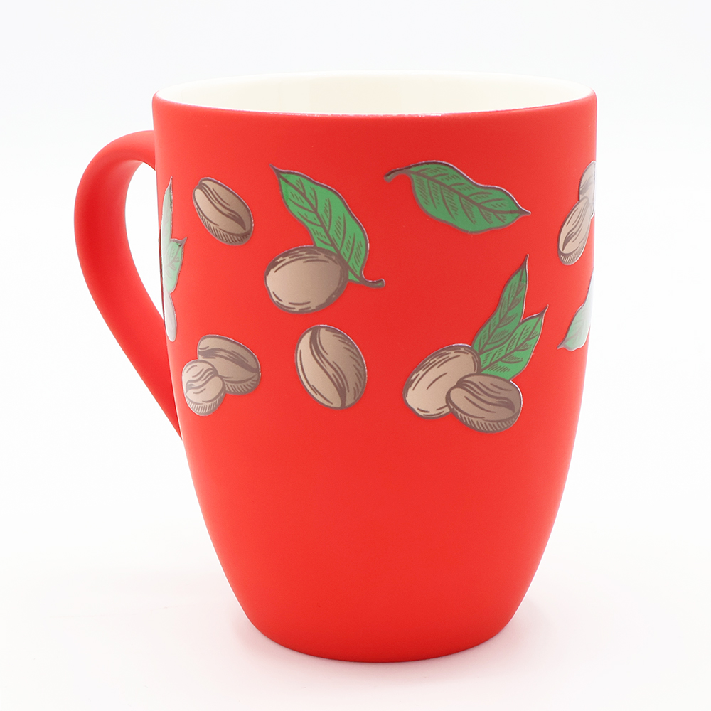Данная модель имеет приятную, бархатистую на ощупь поверхность. Материал, используемый для изготовления этой кружки – костяной фарфор. это, если можно, “гуманная” разновидность посуды из костяного фарфора: вместо костяной золы в его рецепт входит синтетический заменитель, который позволяет добиться сходных с костяным фарфором характеристик по прозрачности, белизне и прочности