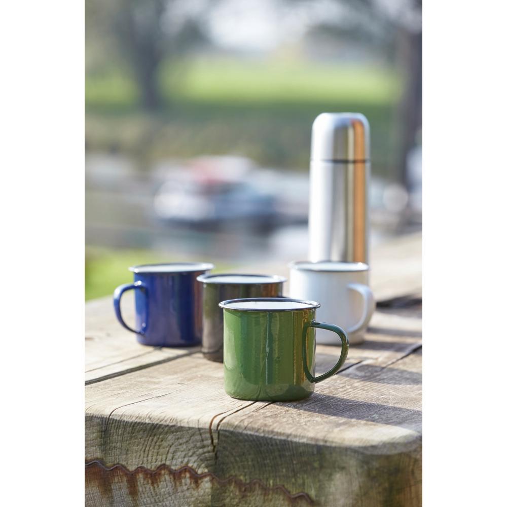 Эмалированная кружка RETRO CUP: с ручкой, цветная снаружи и белая внутри, вместимость около 350 мл, несовершенная отделка