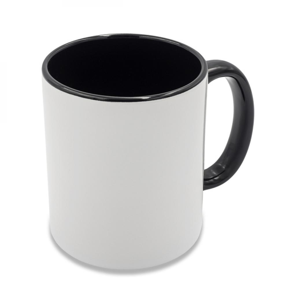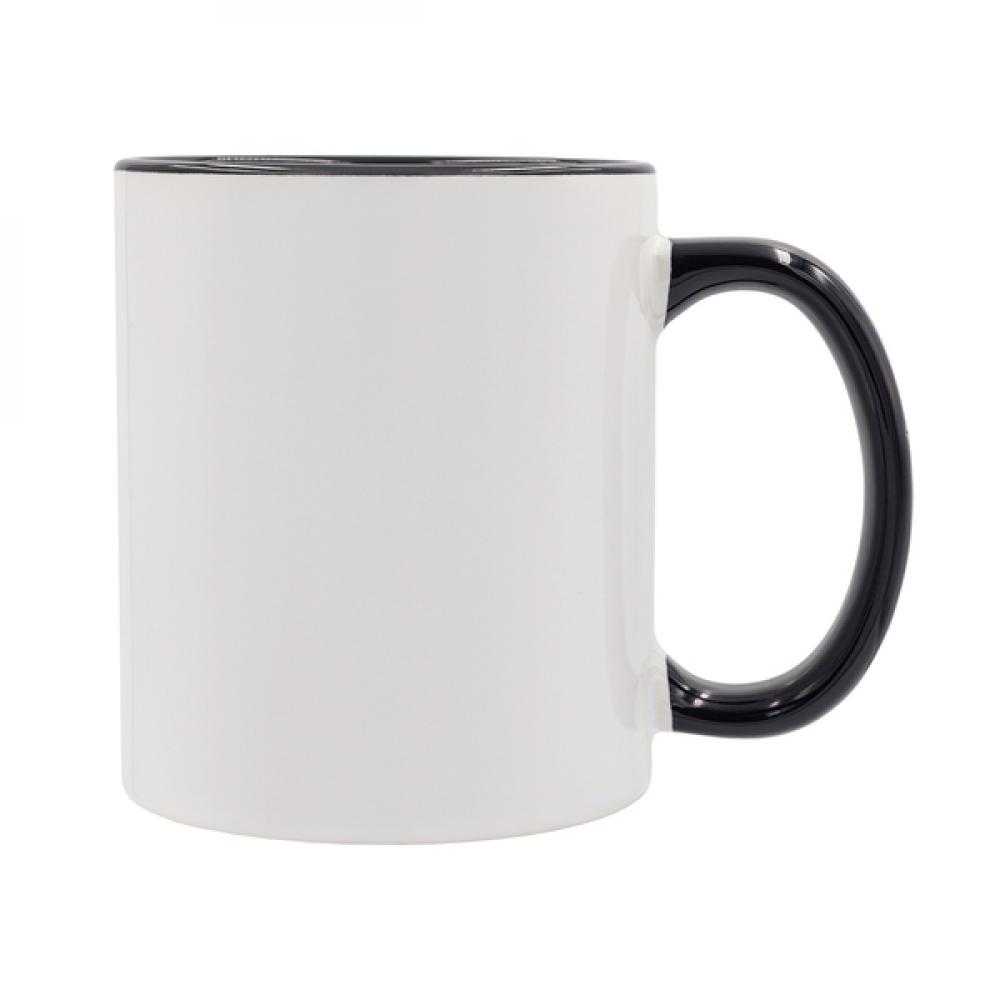 Керамическая кружка объемом 330 мл, предназначенная для сублимационной печати, с цветной ручкой и внутренней поверхностью.