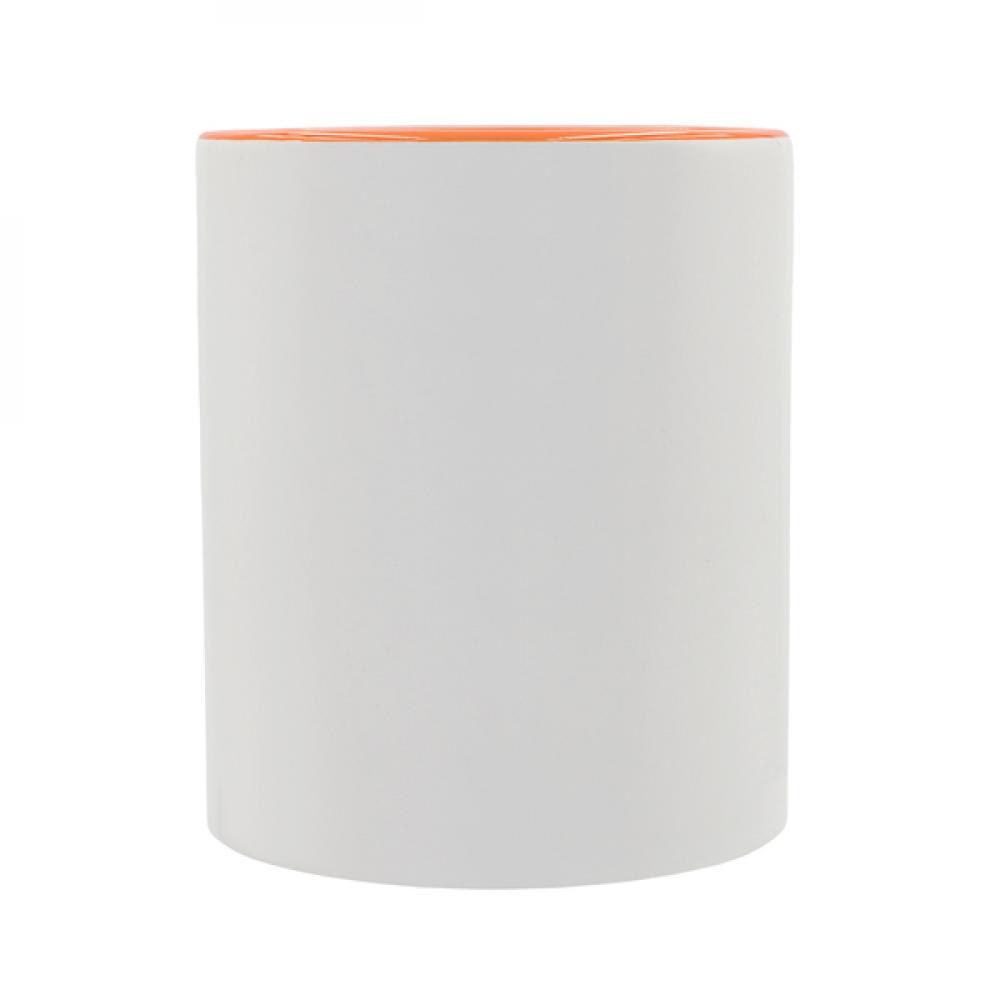 Керамическая кружка объемом 330 мл, предназначенная для сублимационной печати, с цветной ручкой и внутренней поверхностью.