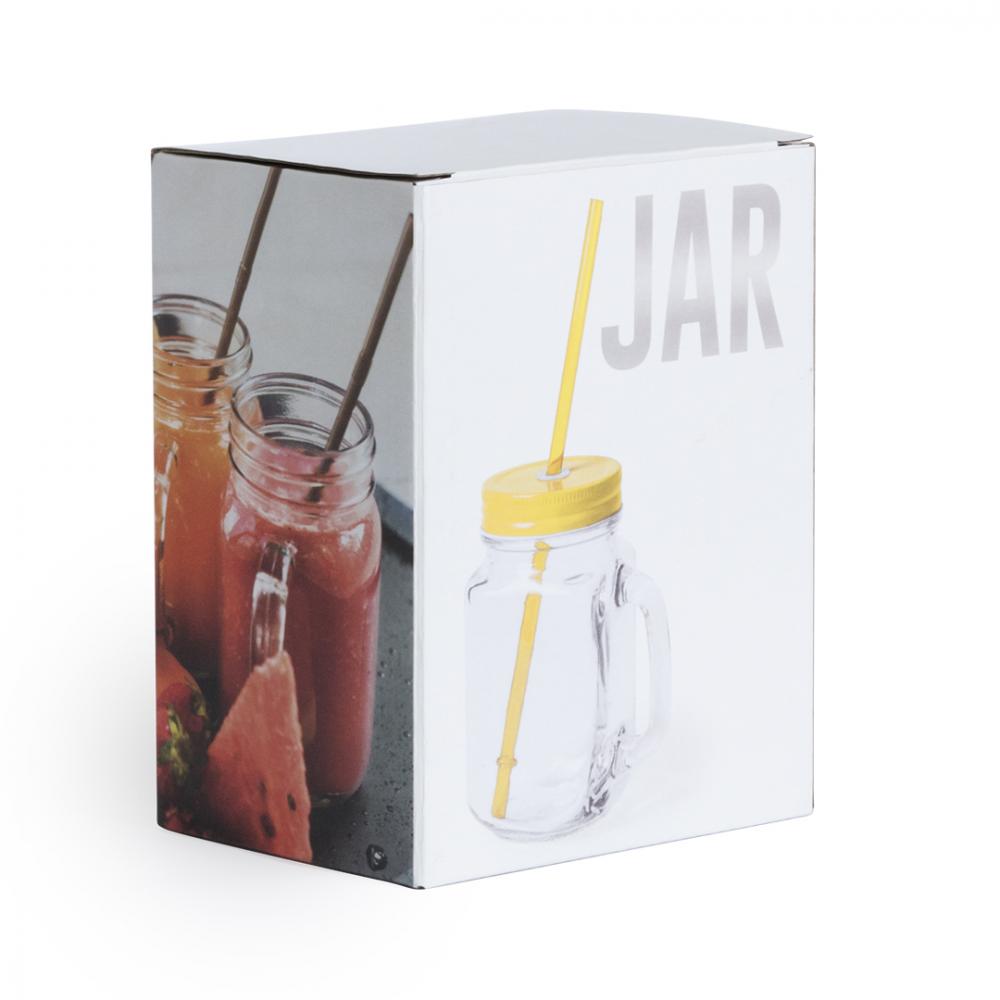 Стеклянная кружка с металлической крышкой и трубочкой ярких тонов. 500 мл.