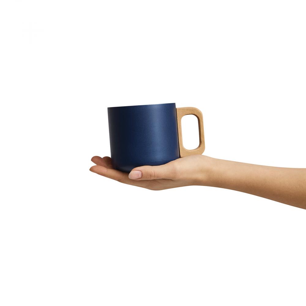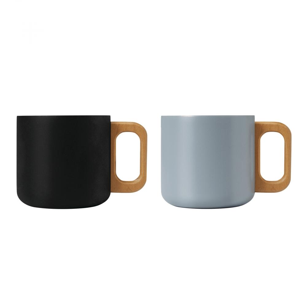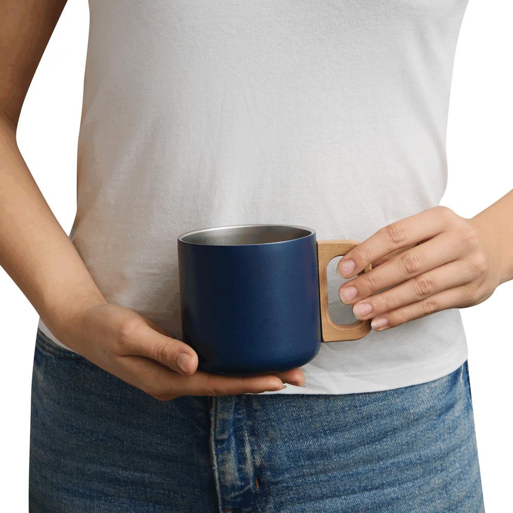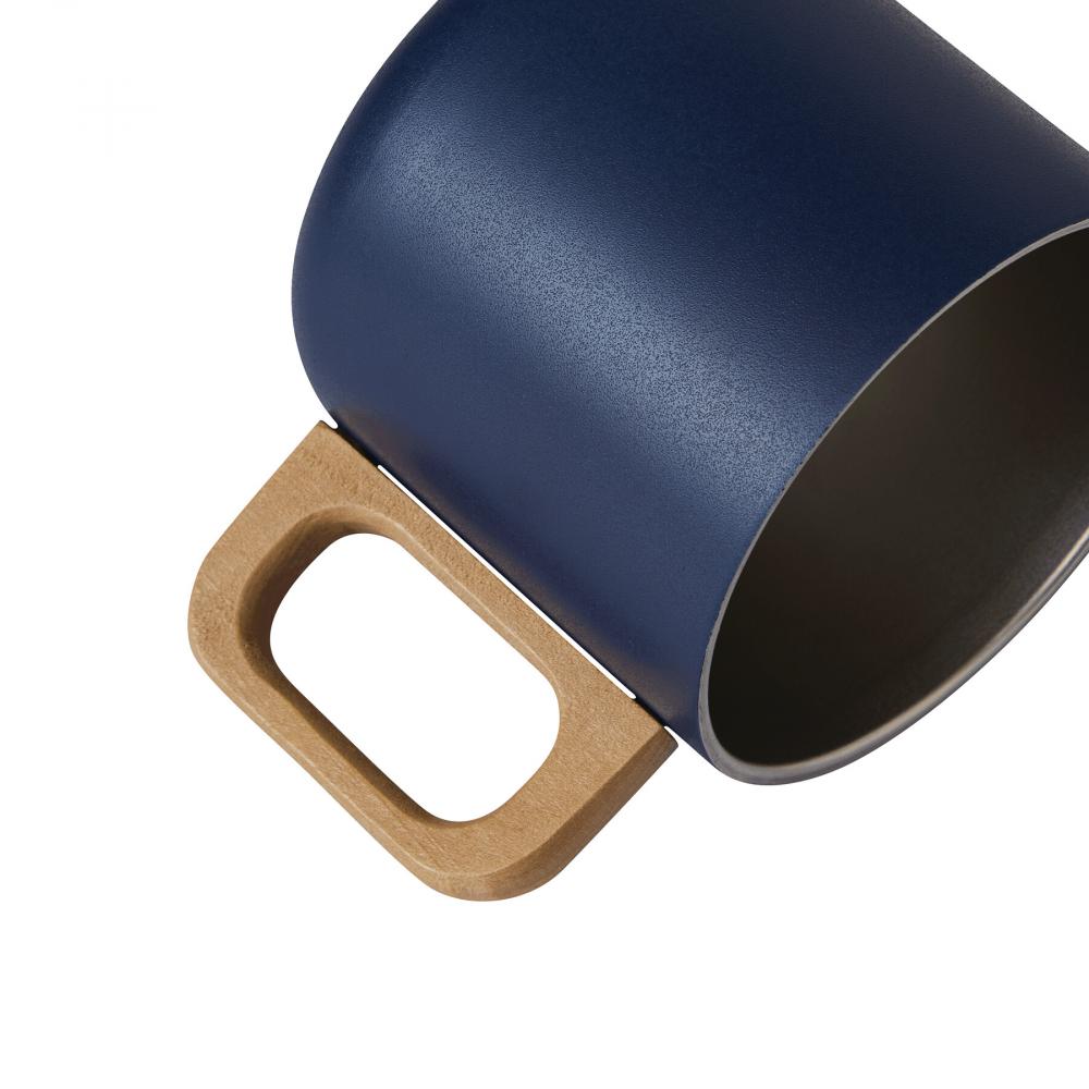 Кружка из нержавеющей стали RUSTIC TRIP, двойные стенки: с деревянной ручкой, цветное матовое порошковое покрытие снаружи и серебристое внутри, вместимость около 350 мл