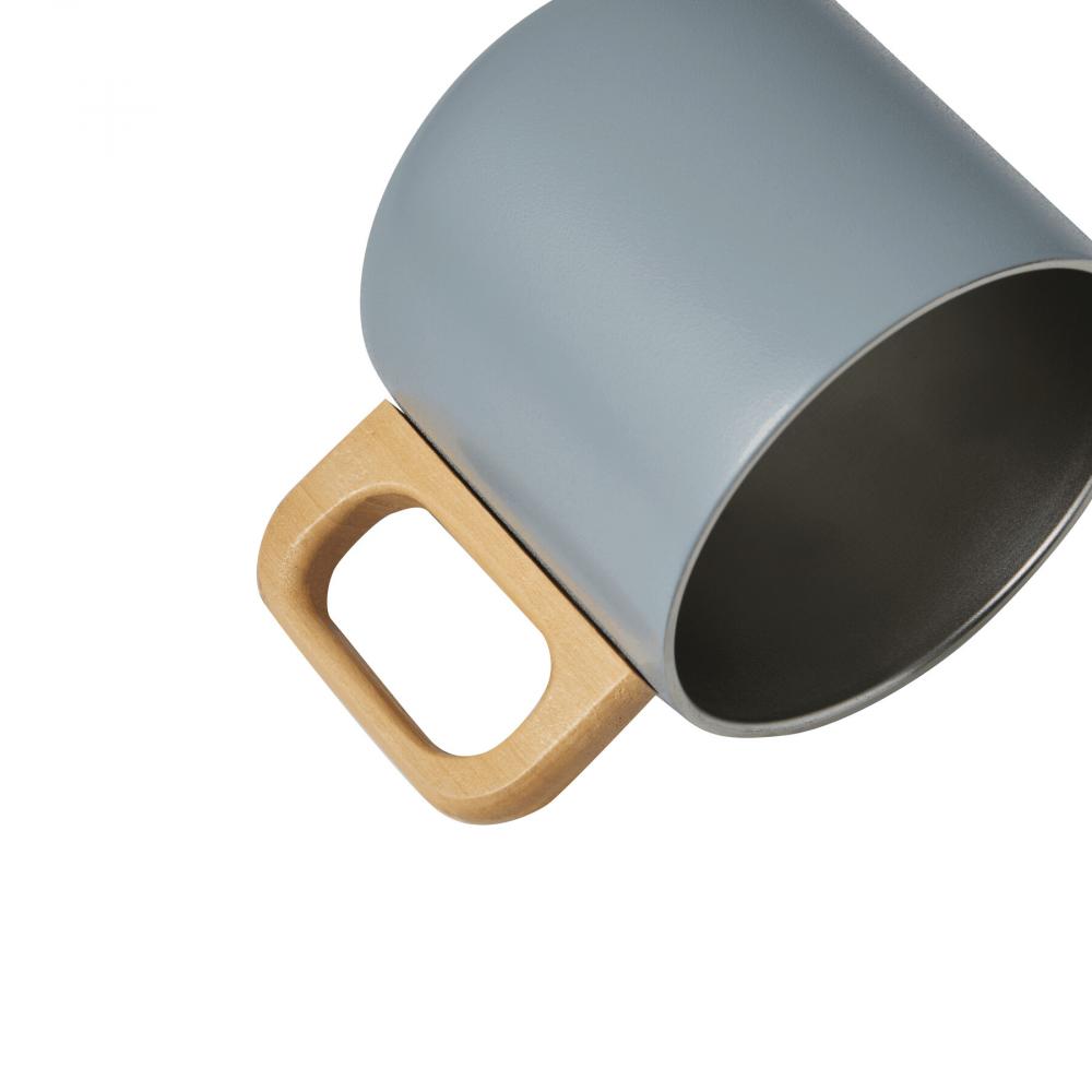 Кружка из нержавеющей стали RUSTIC TRIP, двойные стенки: с деревянной ручкой, цветное матовое порошковое покрытие снаружи и серебристое внутри, вместимость около 350 мл